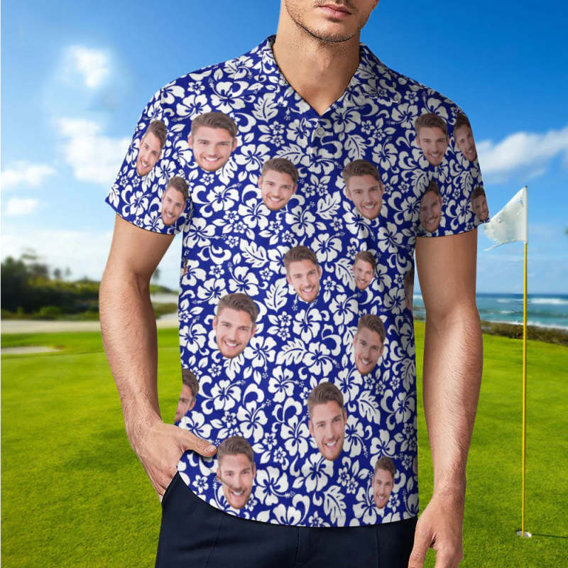 Custom Polo Shirt For Men Personalized Blue Hawaiian Golf Shirts