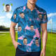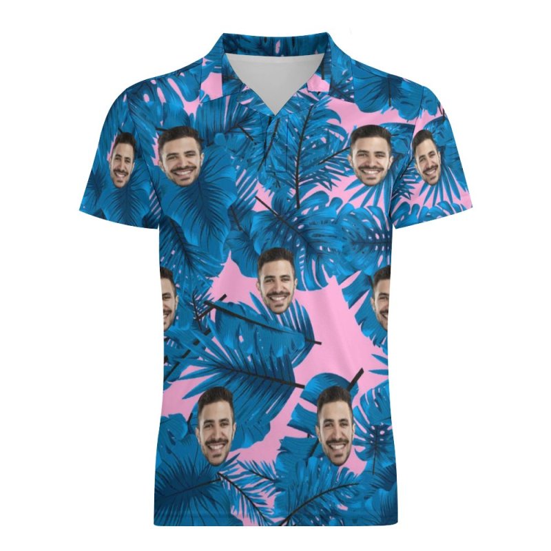Custom Polo Shirt For Men Personalized Blue Leaves Hawaiian Golf Shirts