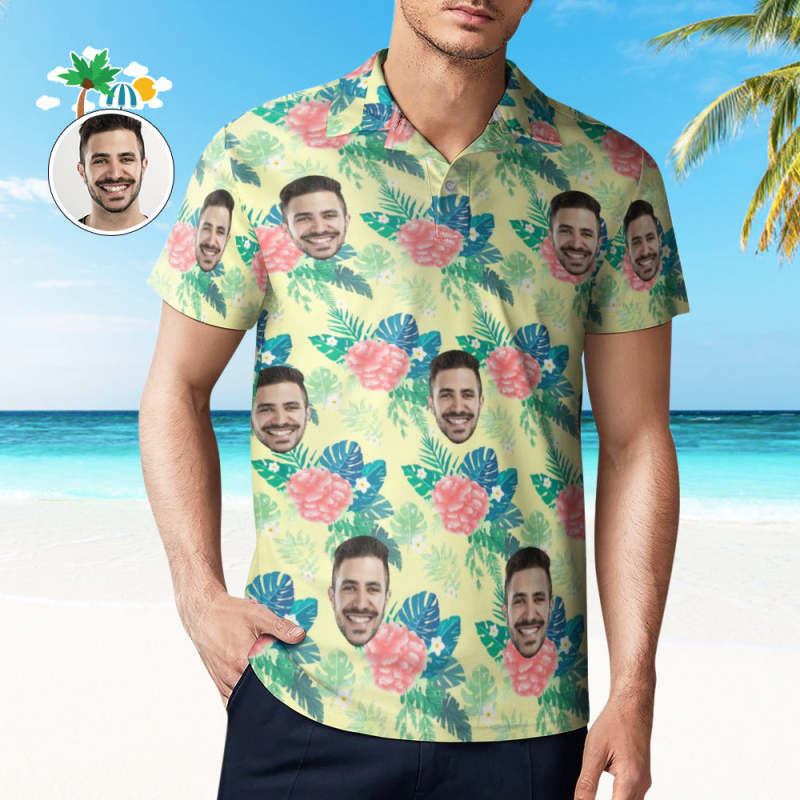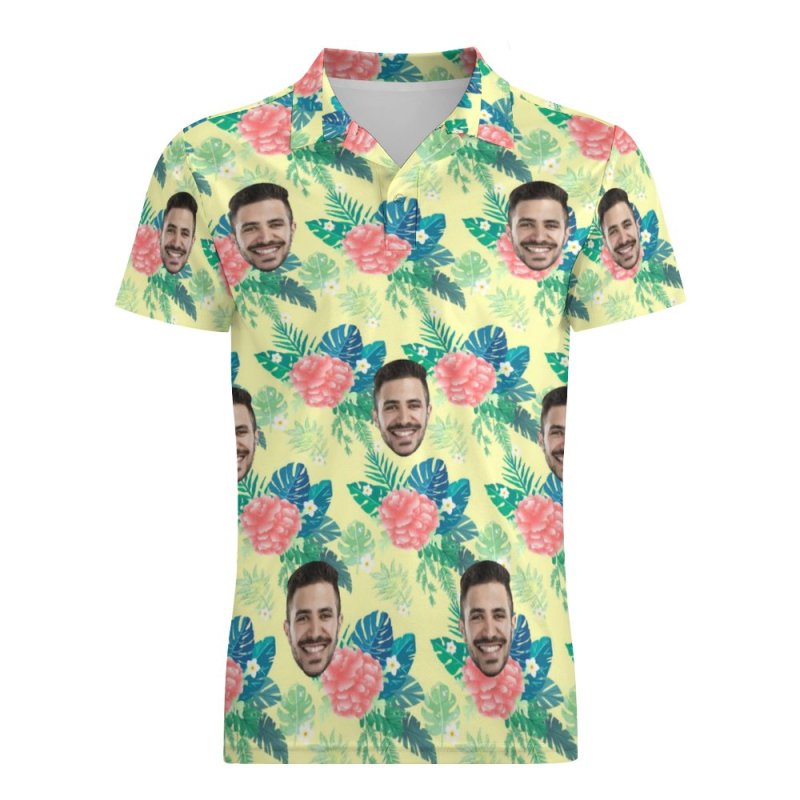 Custom Polo Shirt For Men Personalized Yellow Hawaiian Golf Shirts