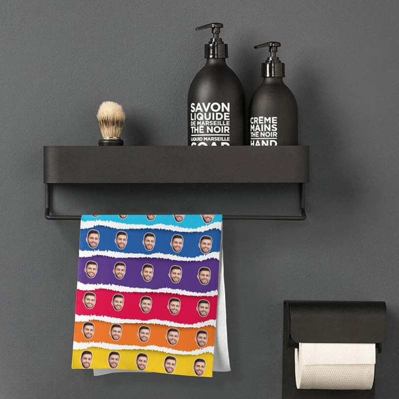 Custom Face Towel Personalized Photo Towel Funny Gift for Boyfriend - Rainbow Cake