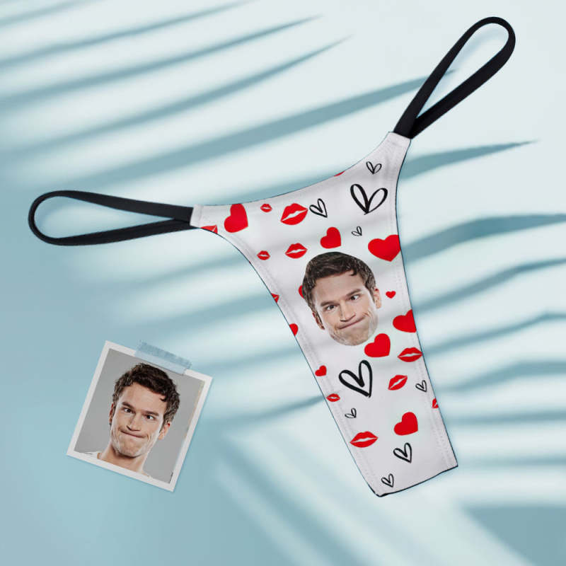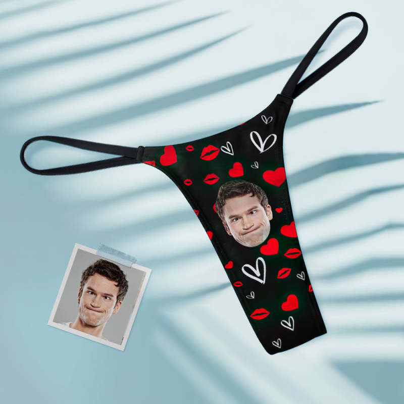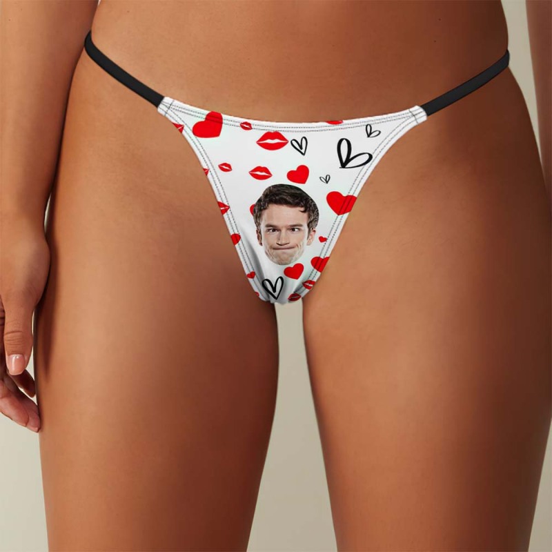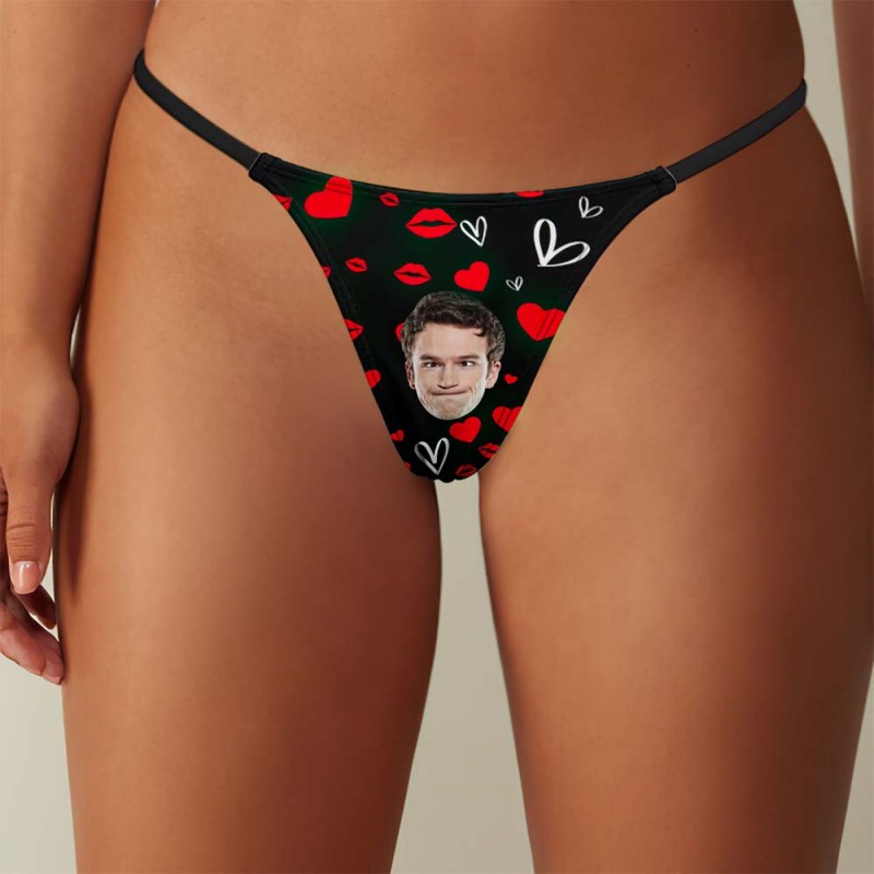 Custom Face Sexy Women's Tanga Thong Red Lips Heart Thong