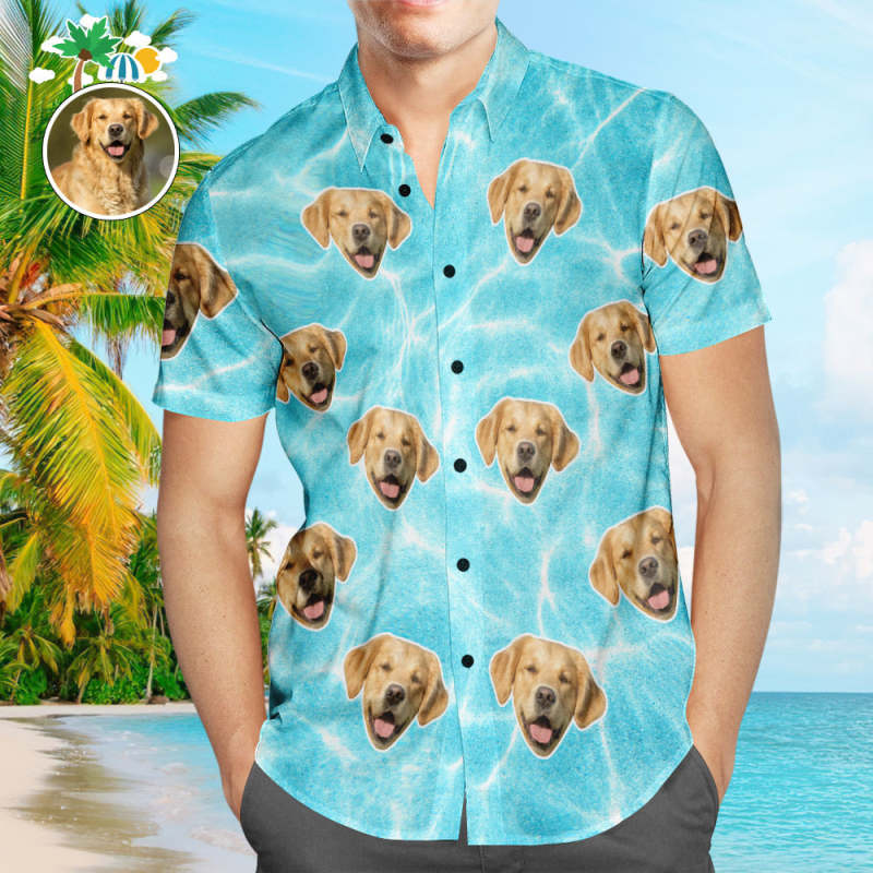 Custom Face Shirt Men's Hawaiian Shirt Blue Wavy Texture for Pet Lover