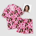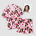 Custom Face Short Sleeve Pajamas Custom Red Heart Photo Pajamas Suit