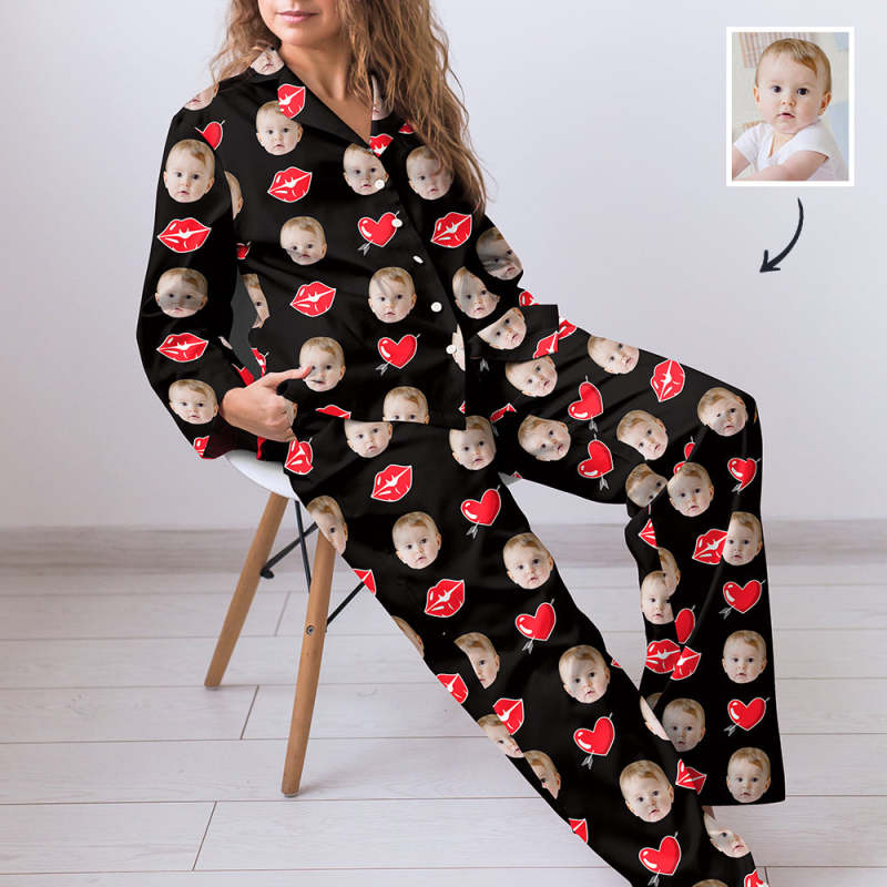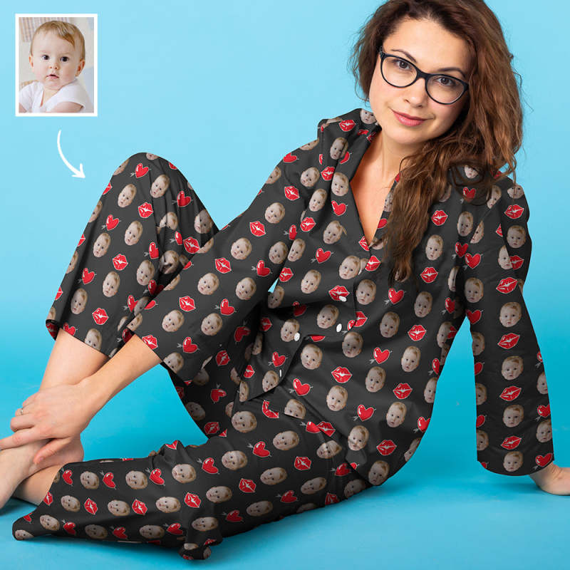 Custom Face Sleepwear, Custom Photo Long Sleeve Homewear, Nightwear, Tops And Pants
