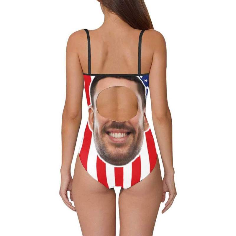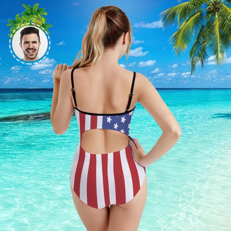 Custom Face Swimwear Women's Photo Slip One Piece Swimsuit - American Flag