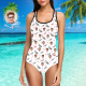 Custom Face Swimwear Women's Photo Slip One Piece Swimsuit Gift For Her - Feather