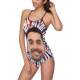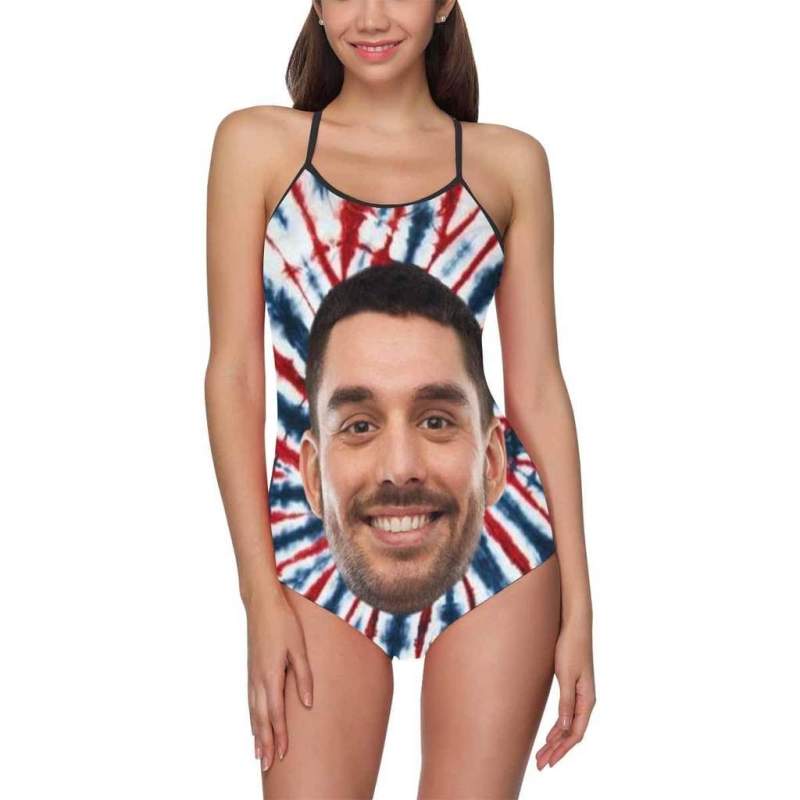 Custom Face Swimwear Women's Photo Slip One Piece Swimsuit- Tie Dye USA Flag