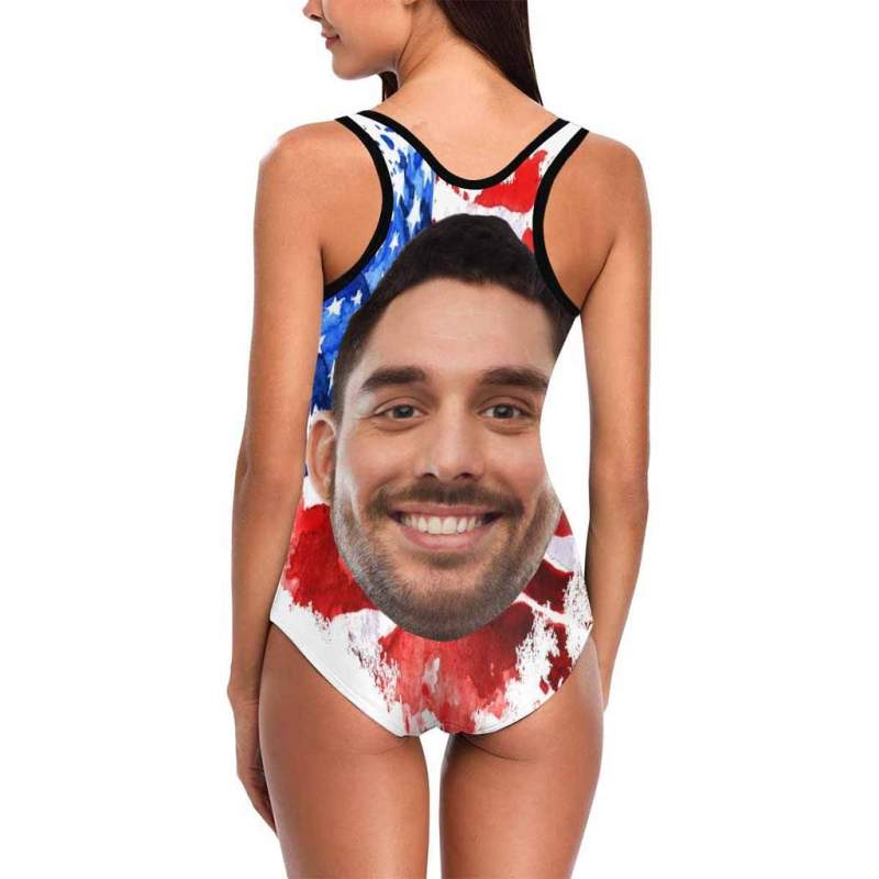 Custom Face Swimwear Women's Photo Slip One Piece Tank Top Bathing Swimsuit - Artistic USA Flag
