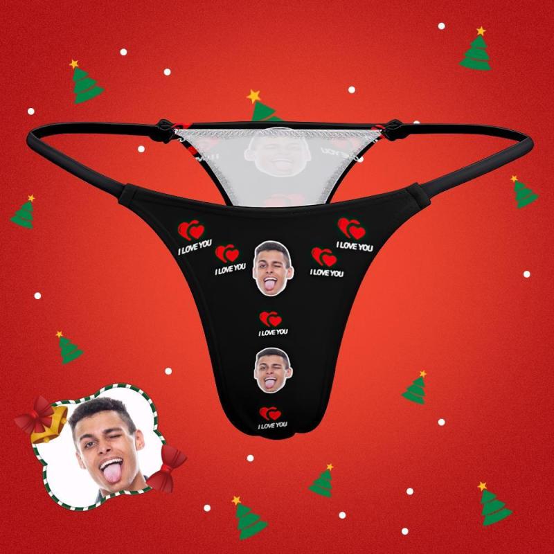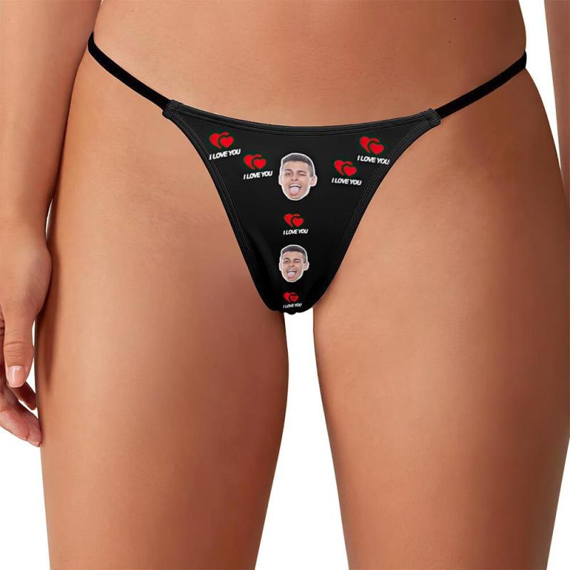 Custom Face Thong Women Customized Sexy Printed Photo Thong - I LOVE YOU