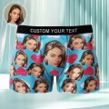 Custom Face Underwear Men's Boxer Briefs Personalized Photo Boxers Breathable Ice Silk Red and Pink Heart
