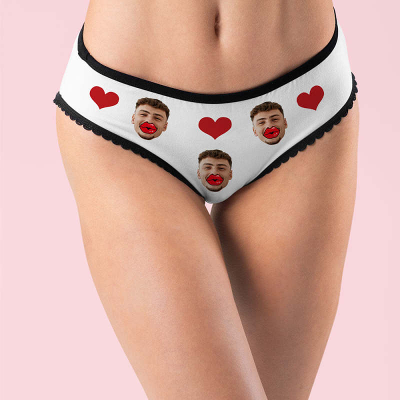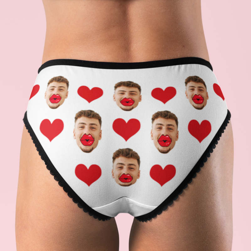 Custom Face Underwear Personalized Red Lips and Heart Underwear Valentine's Day Gift