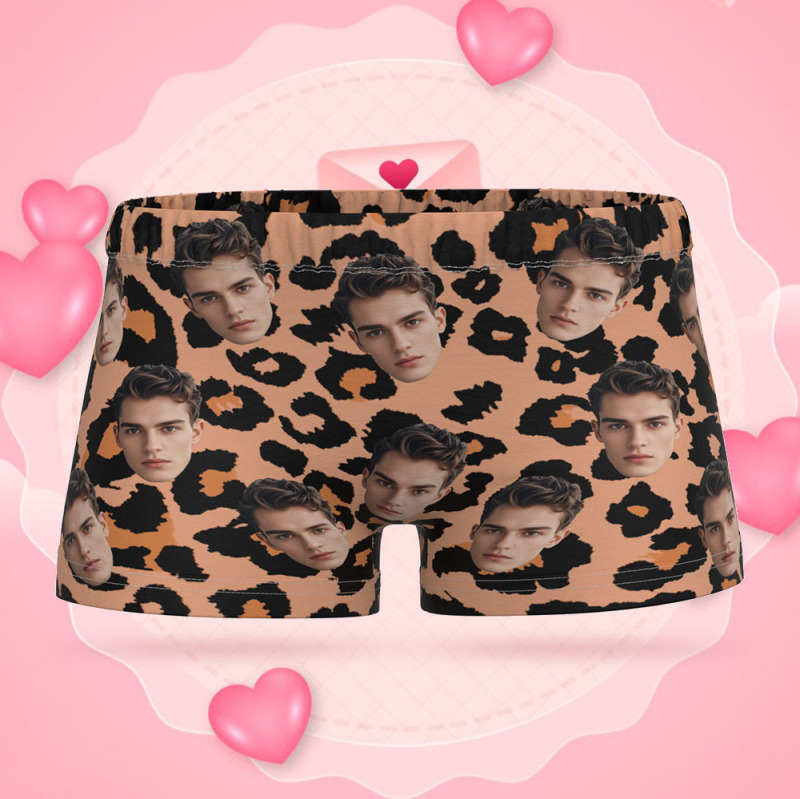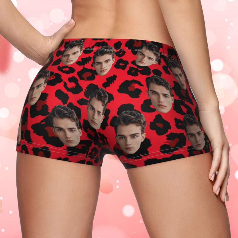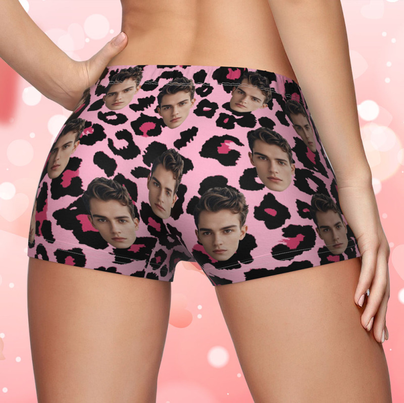 Custom Face Women's Boy Short Personalized Boyfriend Face Sexy Leopard Underwear Gifts For Her