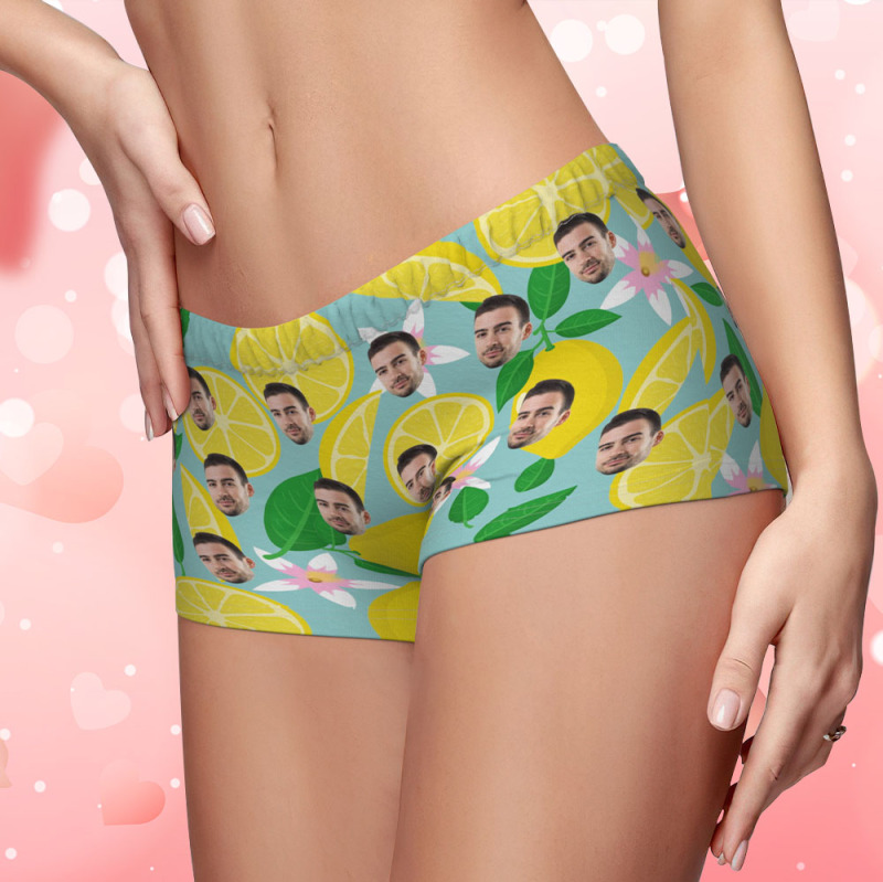 Custom Face Women's Boy Short Boyfriend Face Lemon Design Underwear Gifts For Her