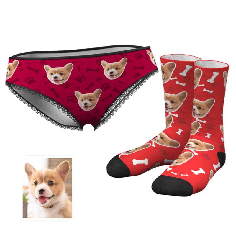 Custom Face Womens Panties-Dog Claw And Crew Socks Set