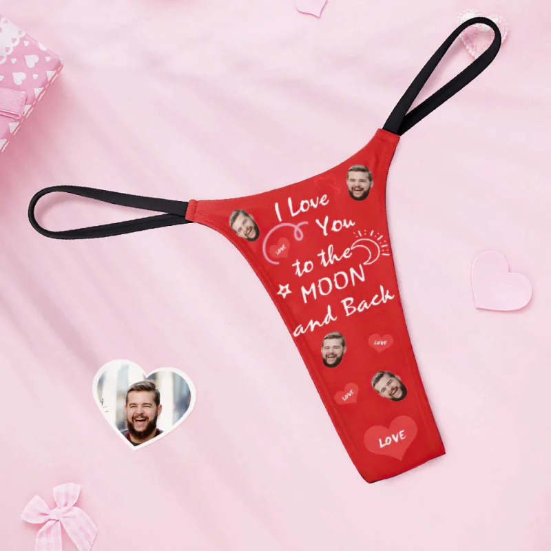 Custom Face Women's Tanga Thong I Love You To The Moon And Back Valentine's Day Gift