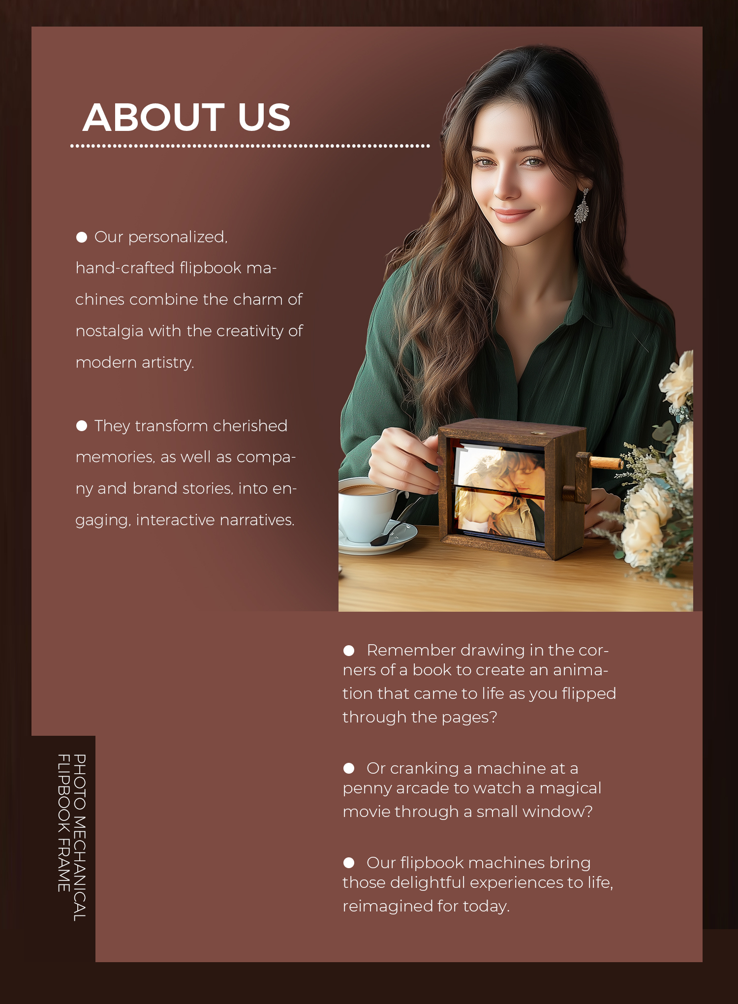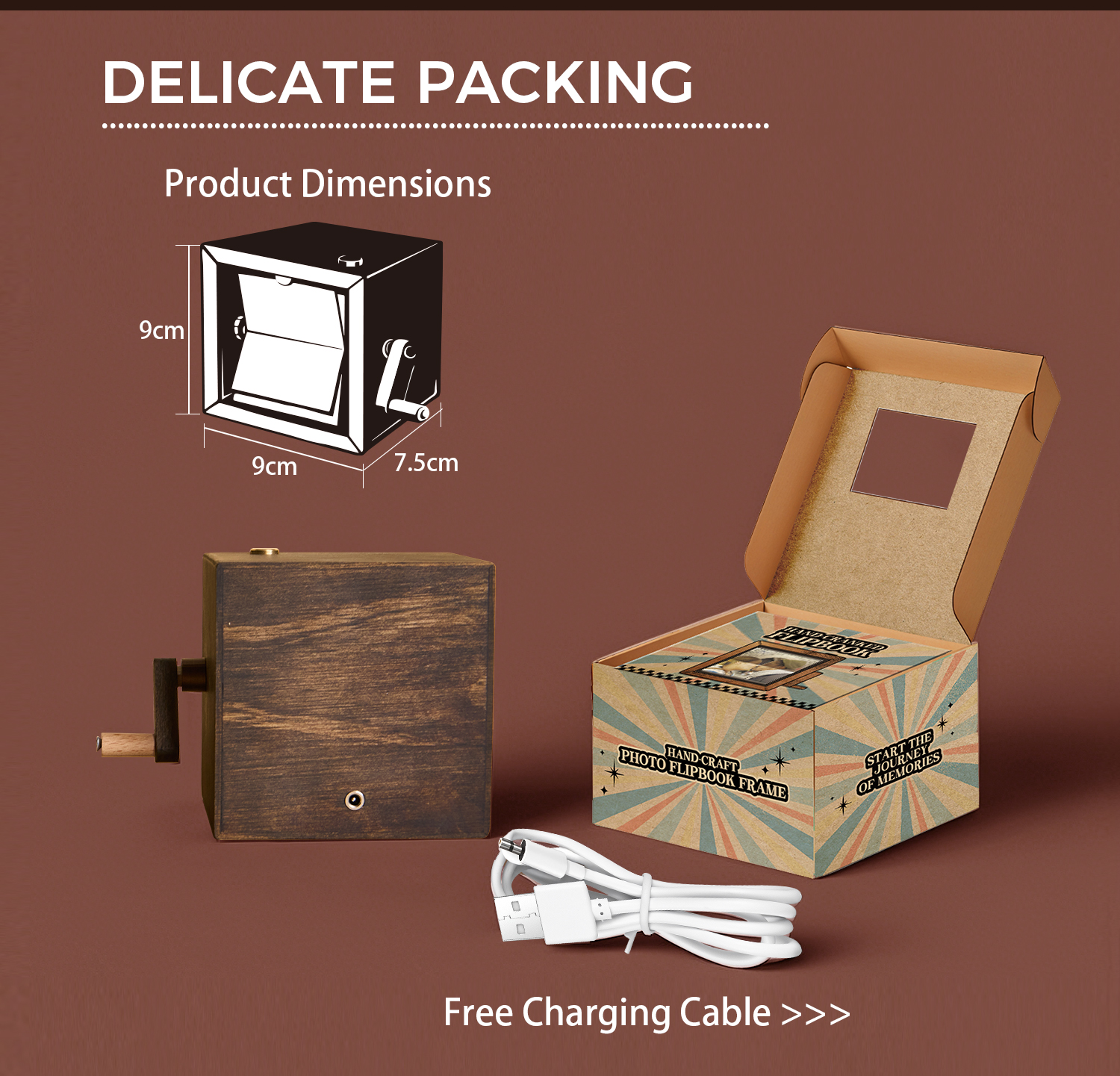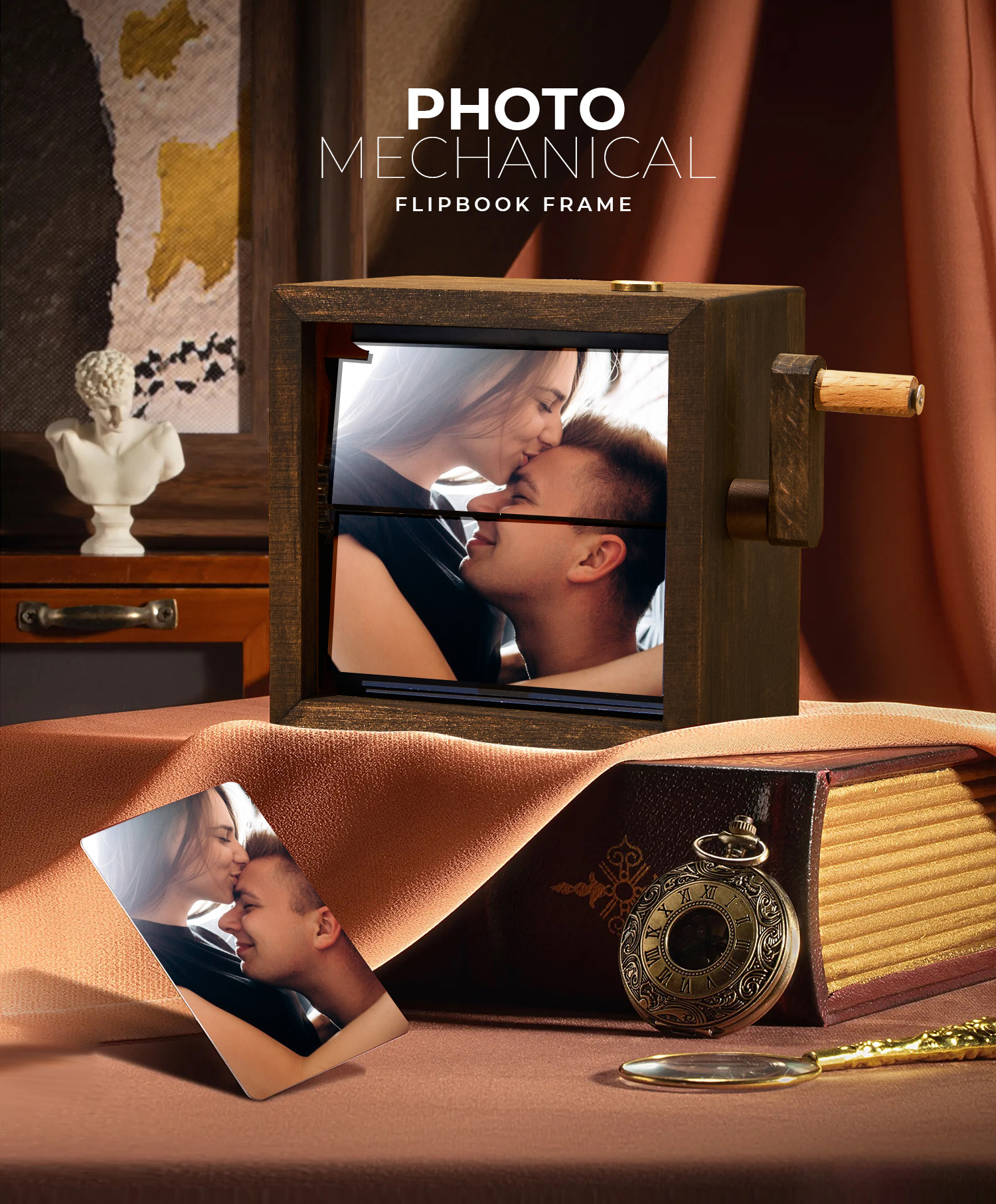 Custom Flip Book Frame Animation Machine Mechanical Personalized Hand-cranked Couple Photo Album with Light Black Walnut Photo Cube Frame Valentine's Day Gift