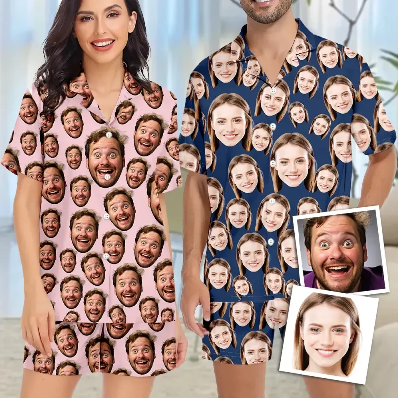 Custom Funny Face Short Sleeve Pajamas Custom Photo Pajamas