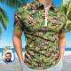 Custom Funny Polo Shirt with Zipper Personalized Face Hawaiian Style Polo Shirt for Men