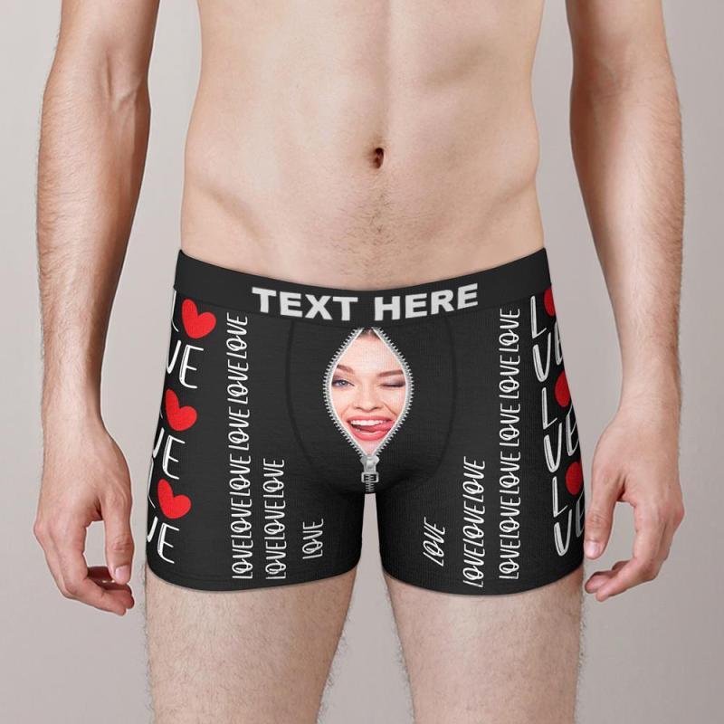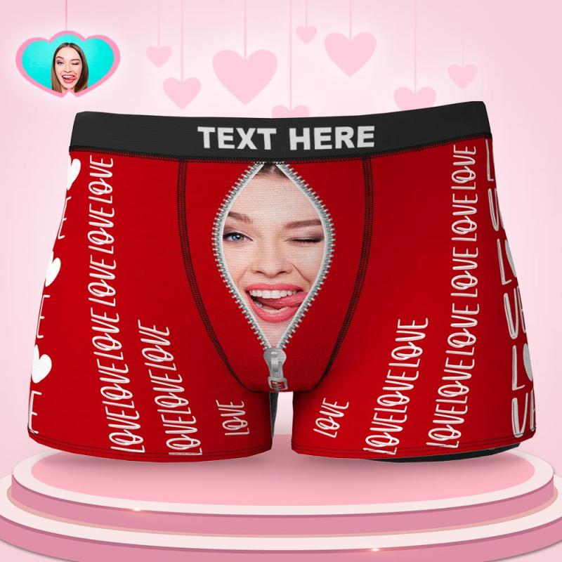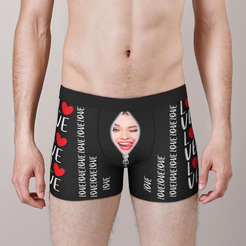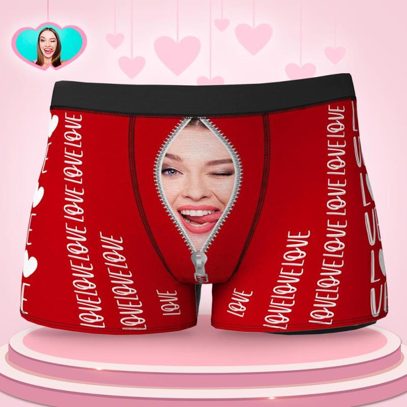 Custom Girlfriend Face Boxer Briefs Love You Valentine's Day Gift for Him