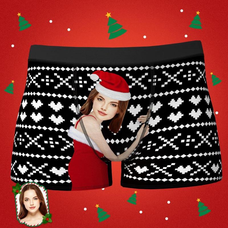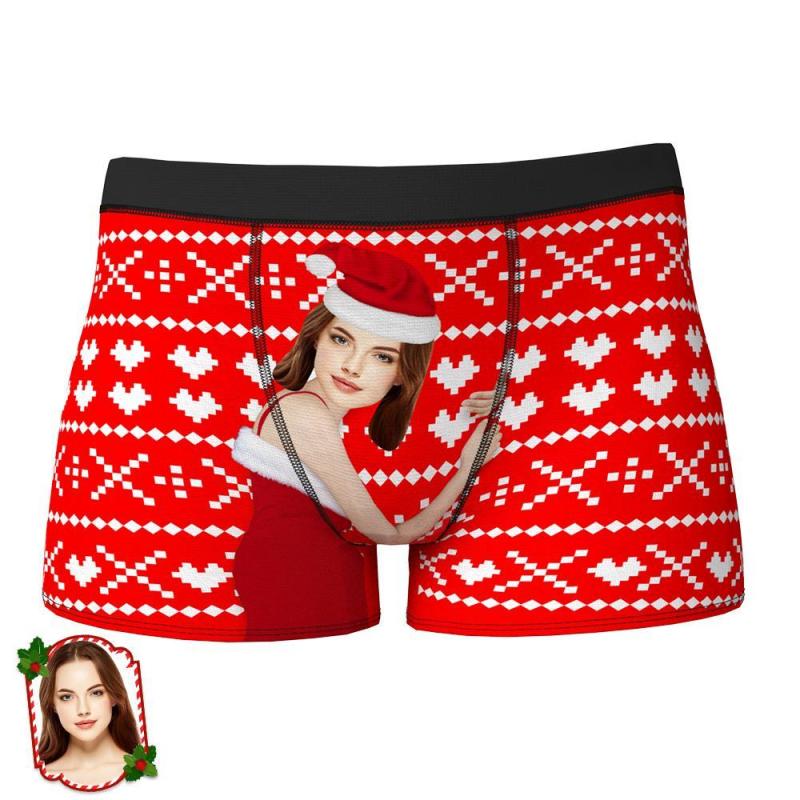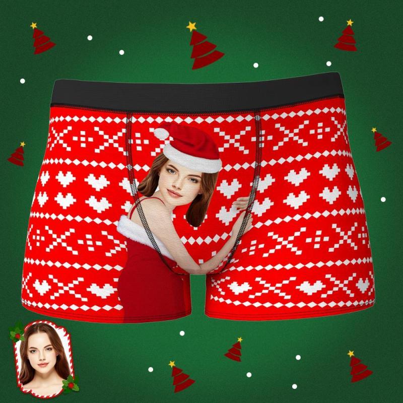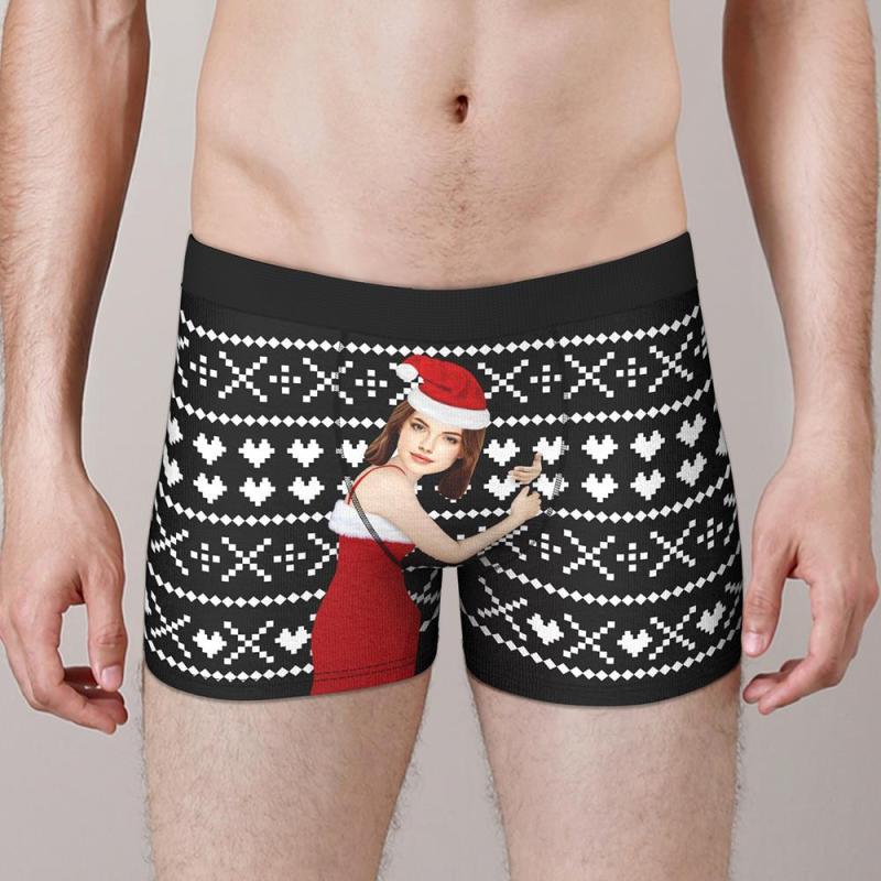 Custom Girlfriend Hug Personalized Face Boxers Shorts Christmas Gift for Men