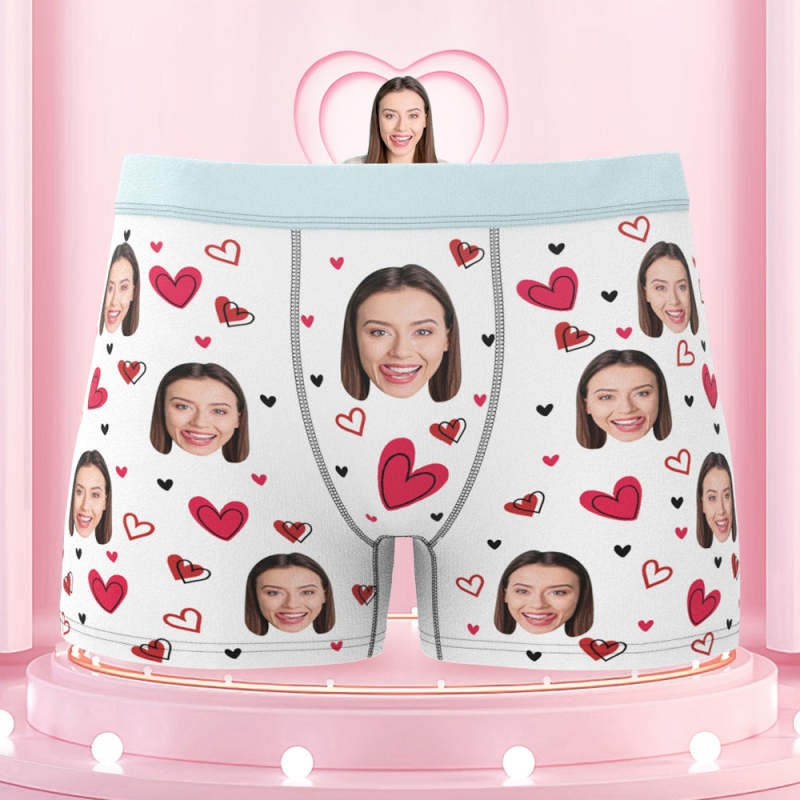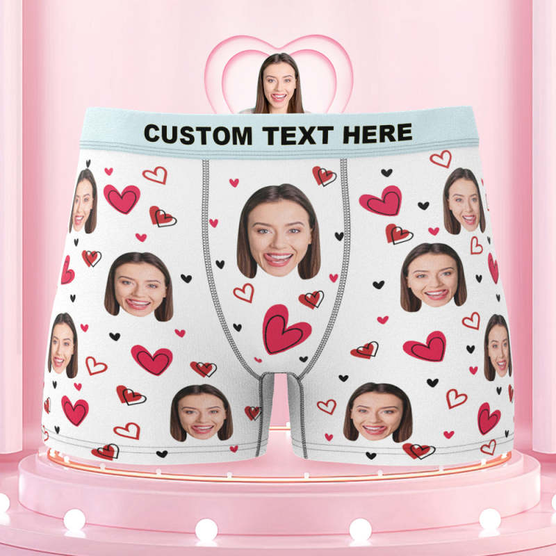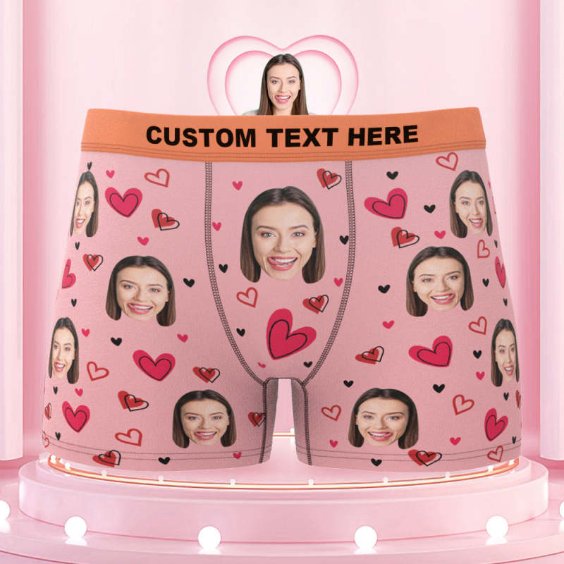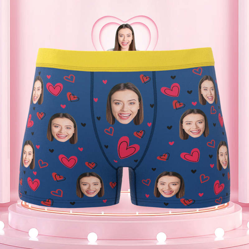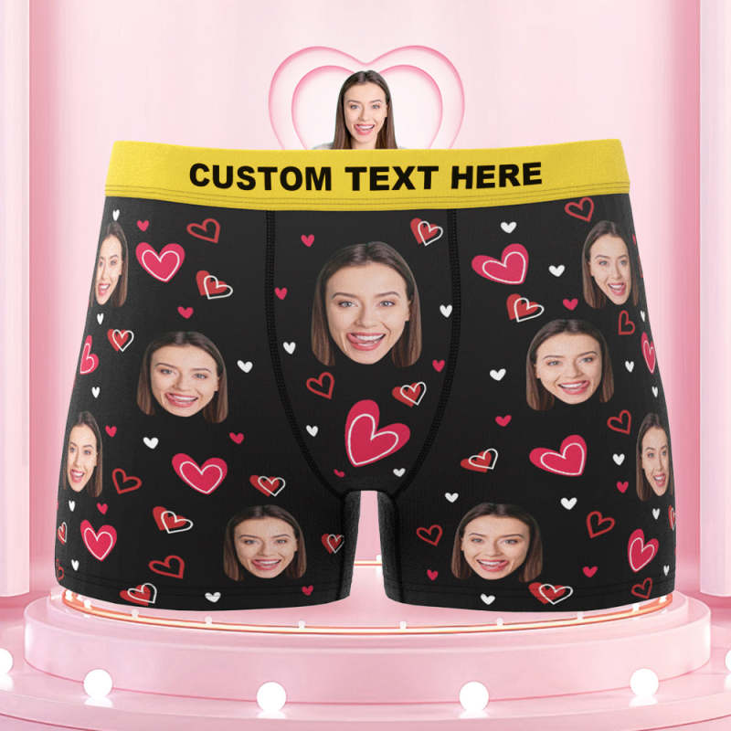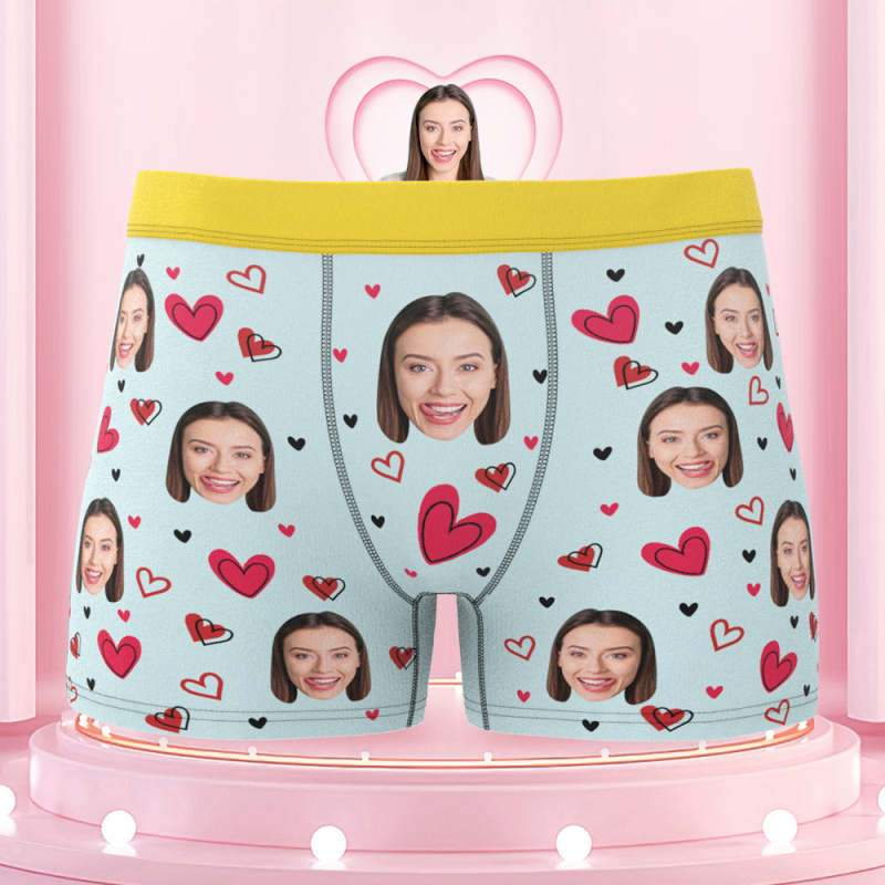 Custom Girlfriend's Face Boxers with Colorful Waistband Full of Love Hearts