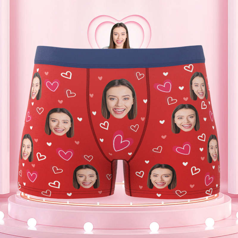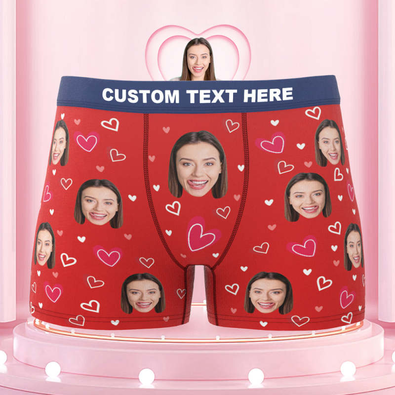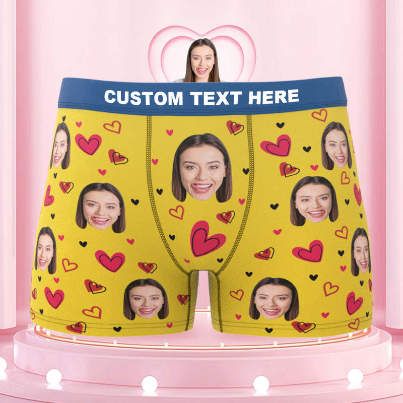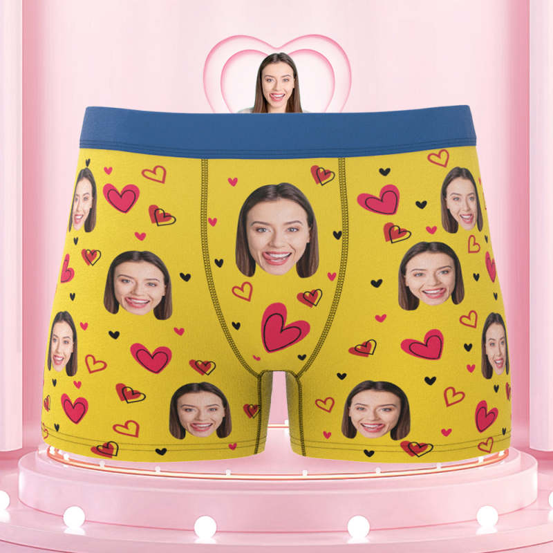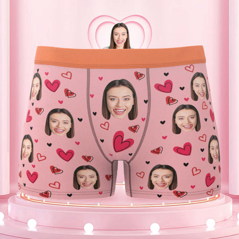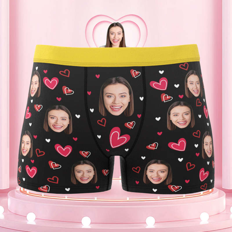 Custom Girlfriend's Face Boxers with Colorful Waistband Full of Love Hearts