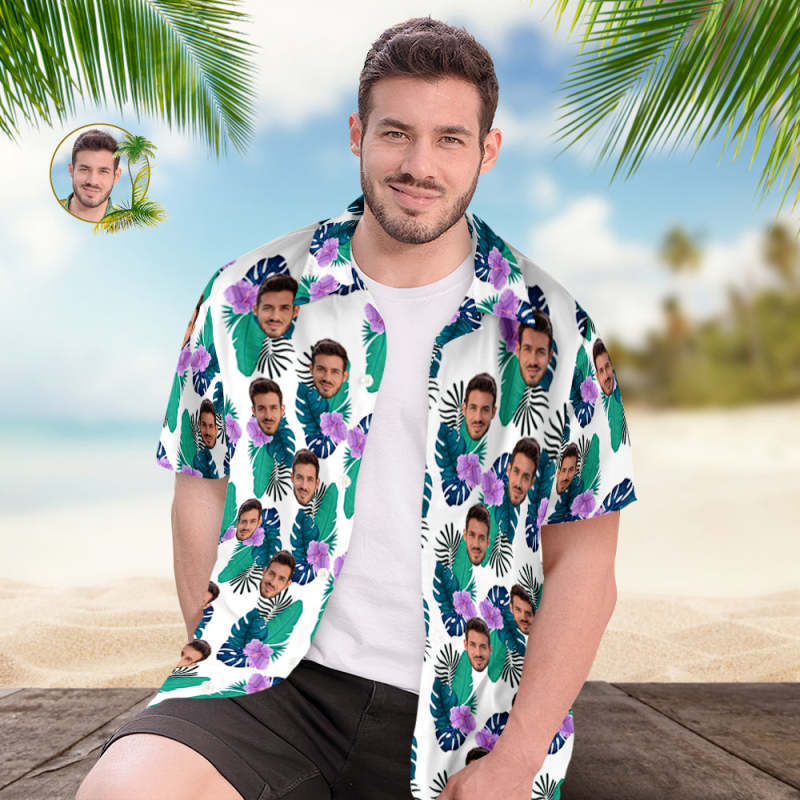 Custom Hawaiian Shirt for Men Personalized Short Sleeves Shirt with Picture Face Photo Printed Hawaii Shirt Green Flower