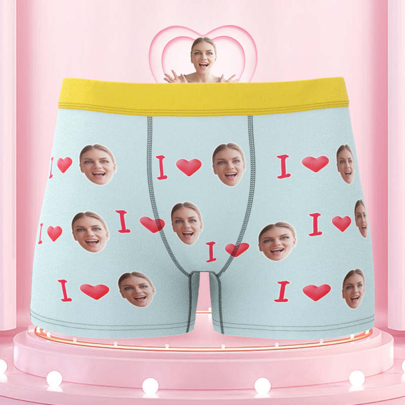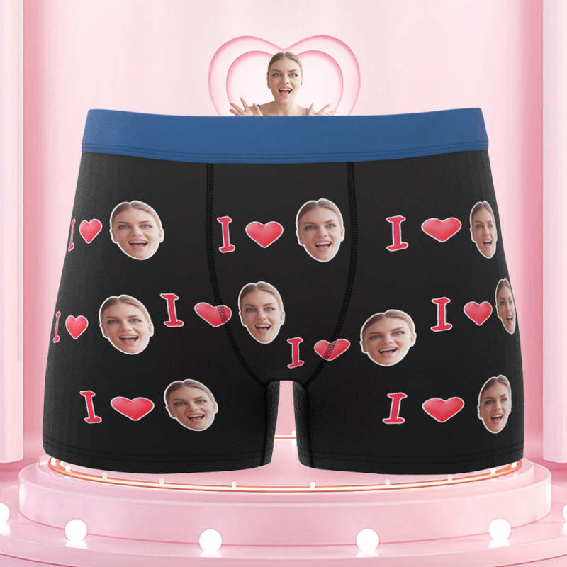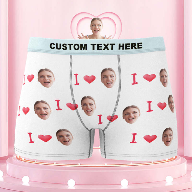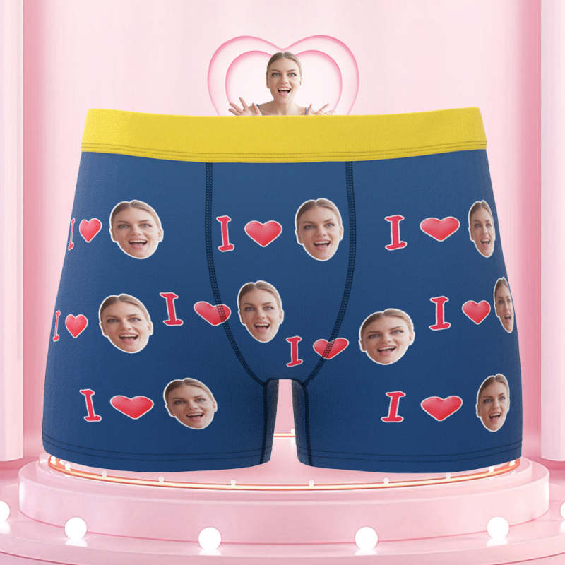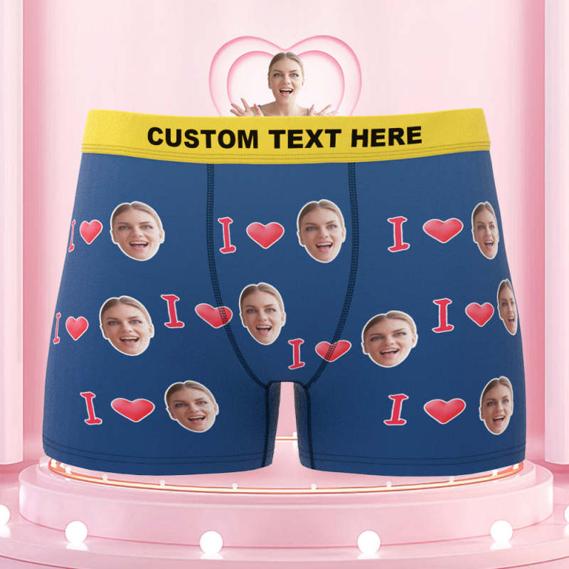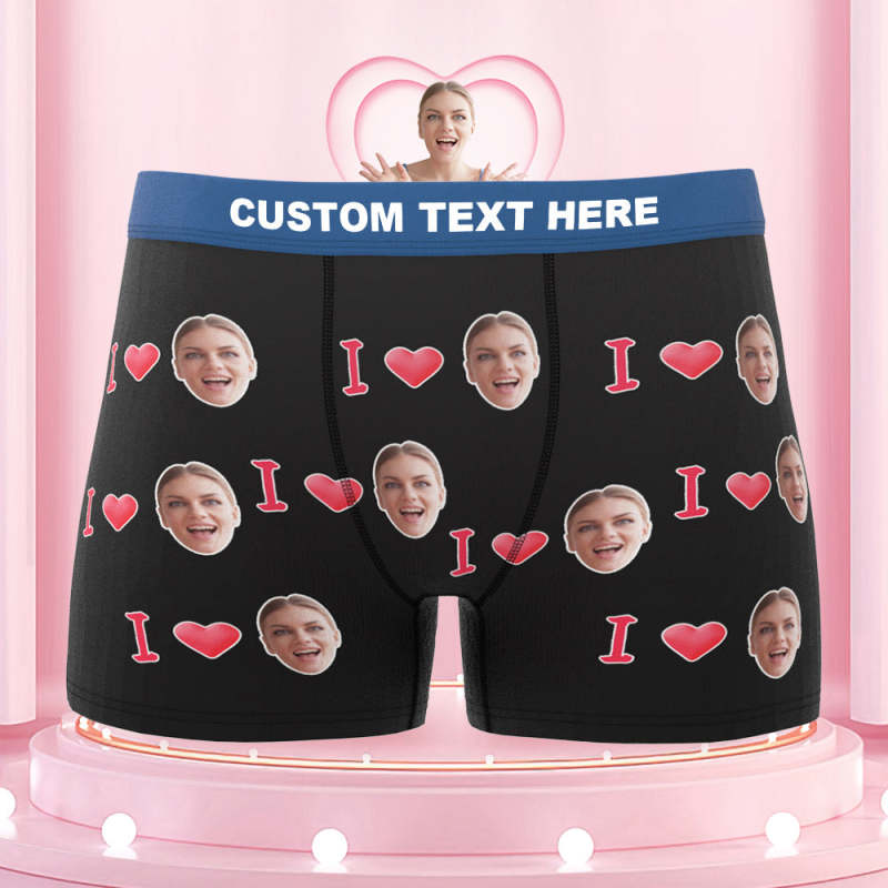 Custom I Love Your Face Colorful Waistband Boxer Briefs Naughty Gift for Him