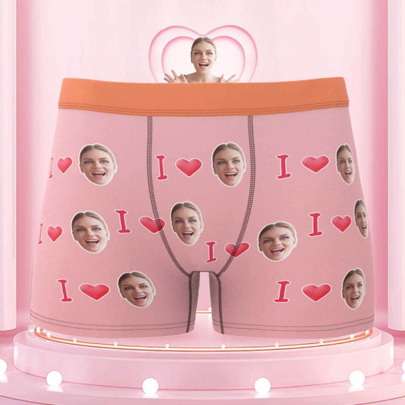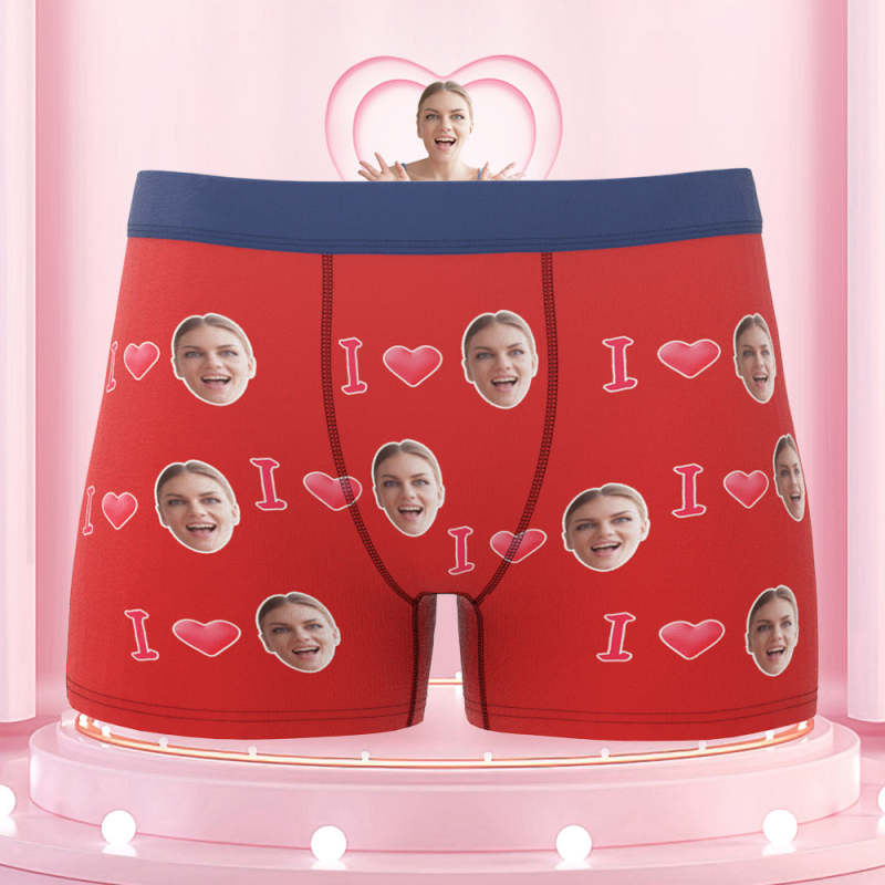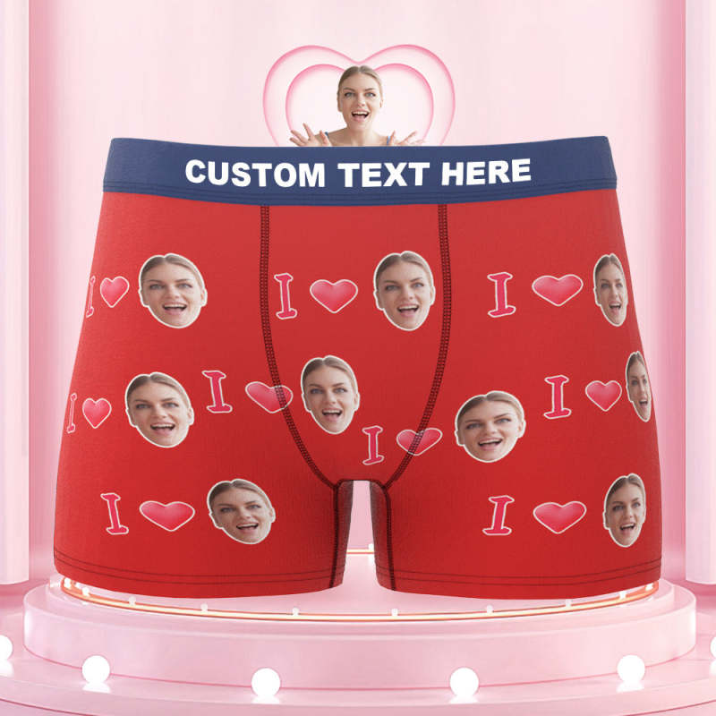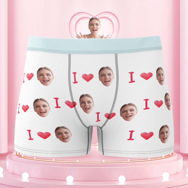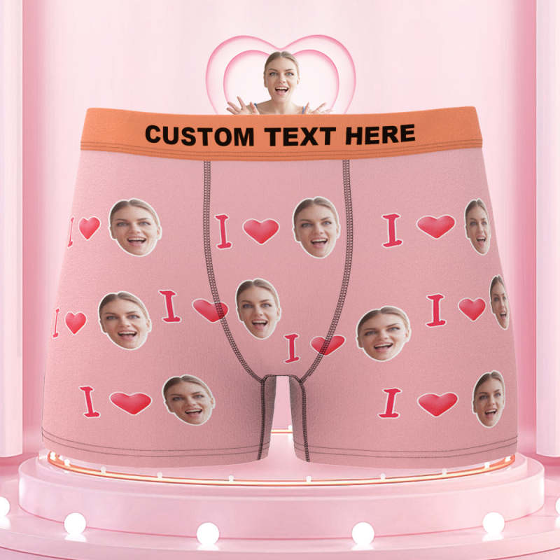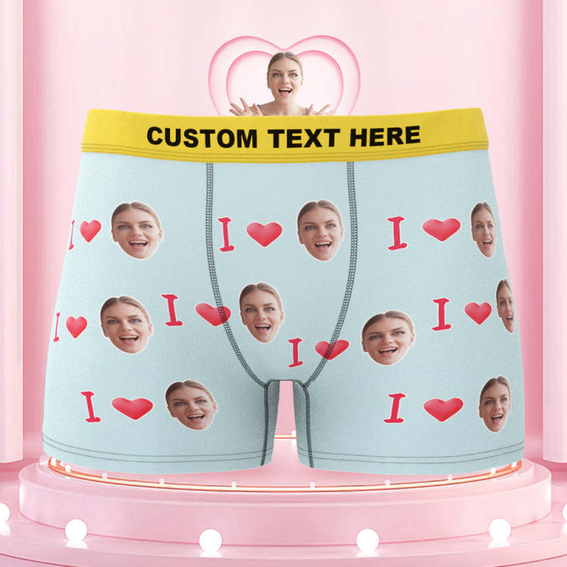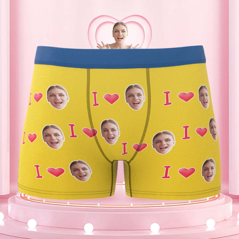 Custom I Love Your Face Colorful Waistband Boxer Briefs Naughty Gift for Him