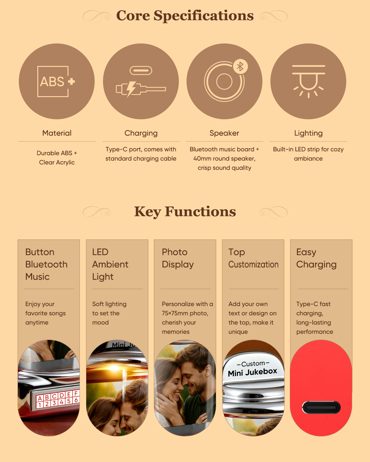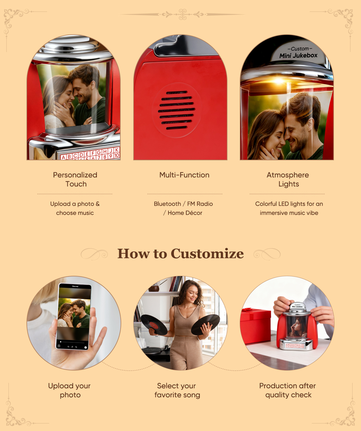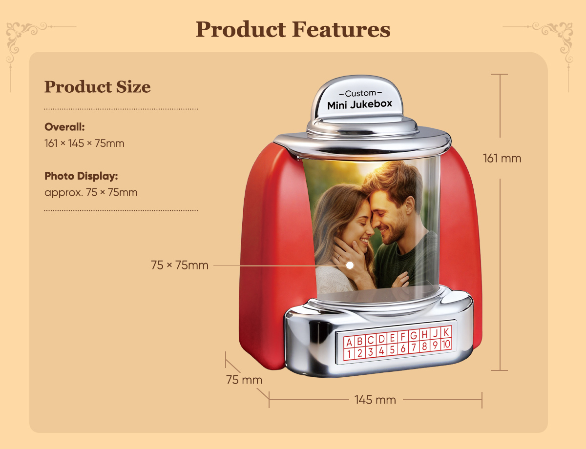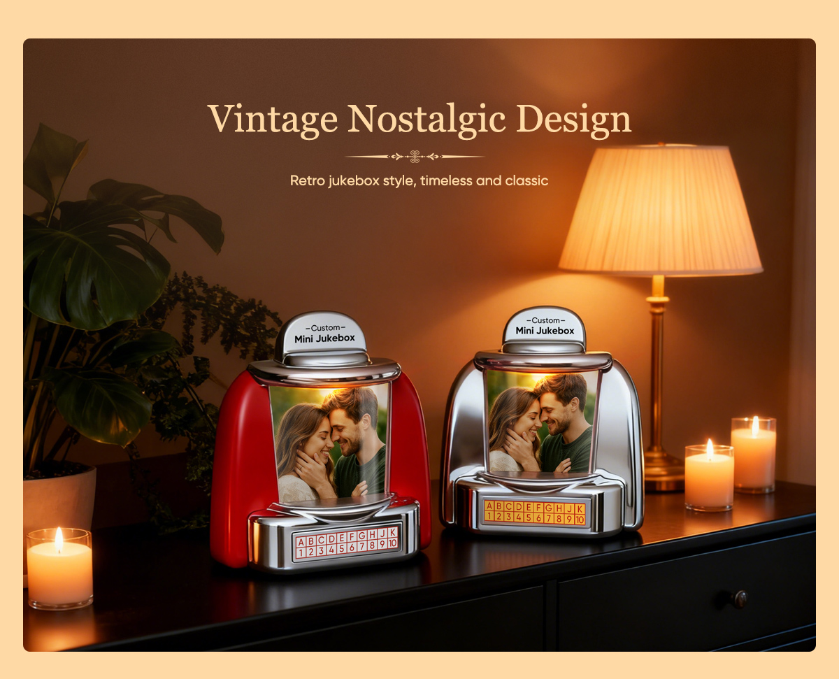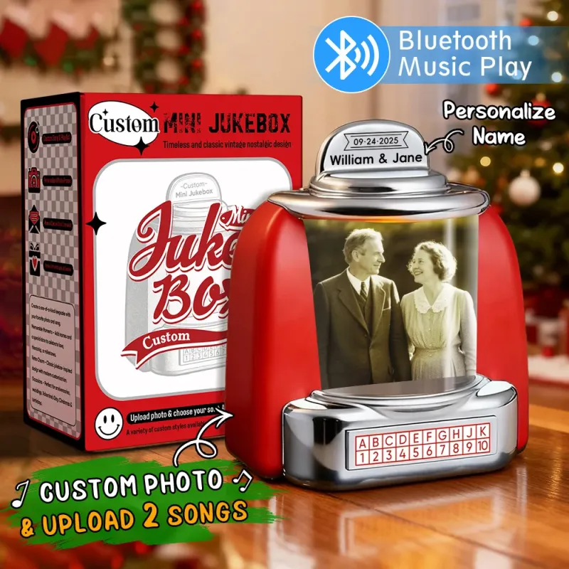 Custom Mini Jukebox Retro Speaker – Personalized Photo,Names & Date Music Mini Player with Bluetooth Music Radio | Vintage Tabletop Home Decor Nostalgic Gift