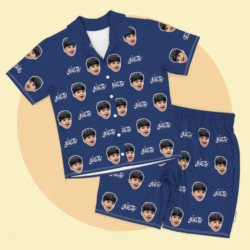 Custom Kid Face Short Sleeved and Pants Pajamas - Love Mom
