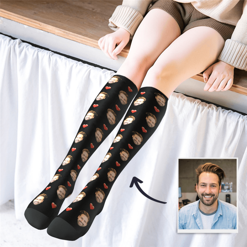 Custom Knee High Heart Face Crew Socks