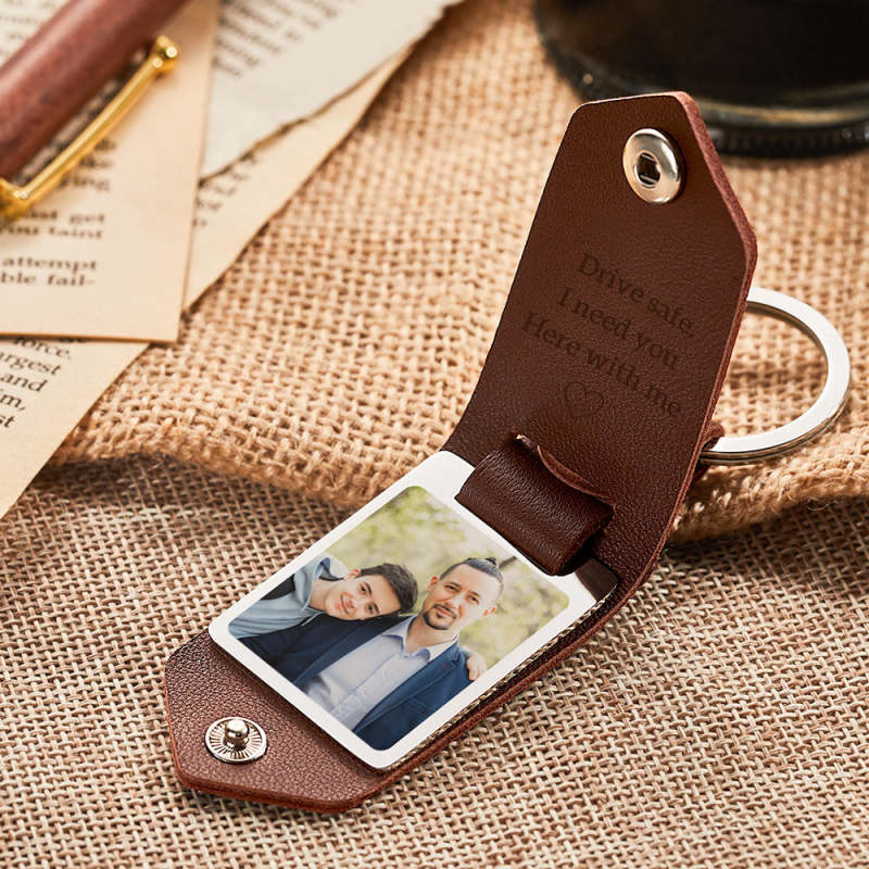 Custom Leather Photo Text Keychain Father's Day Gift