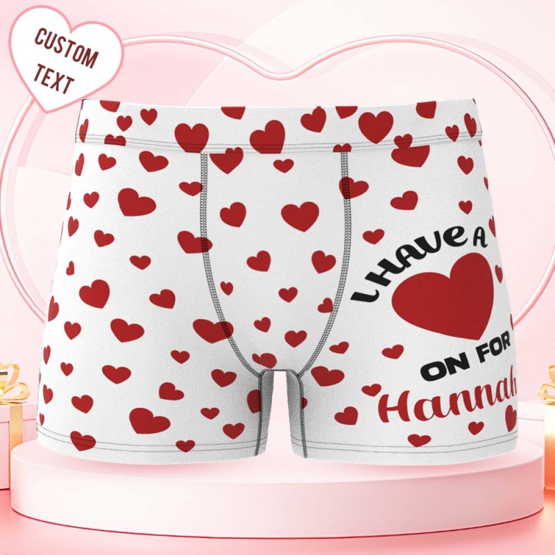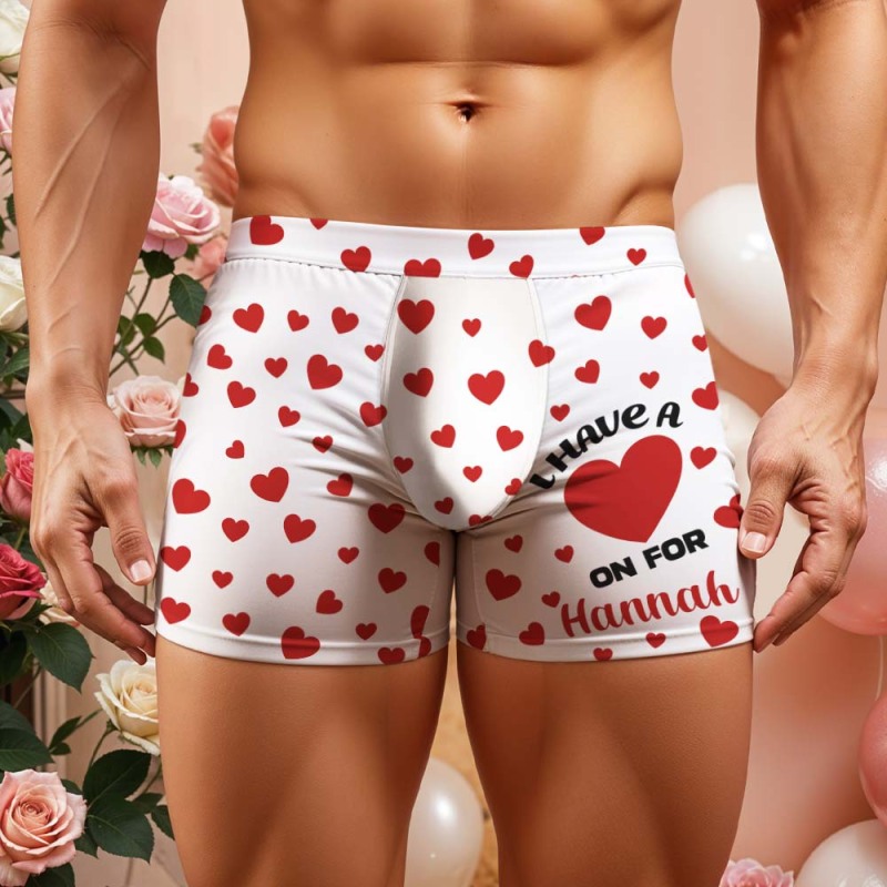 Custom Men's Boxer Shorts Heart On For Personalized Name Valentine's Day Gift