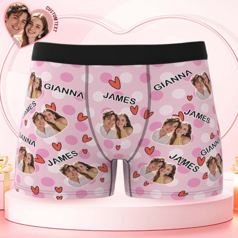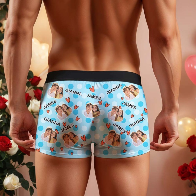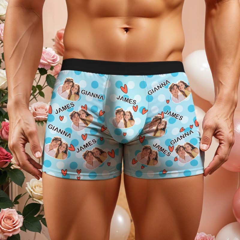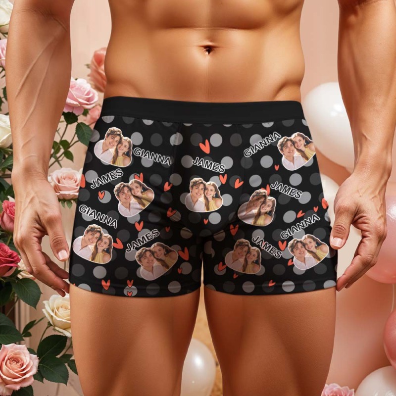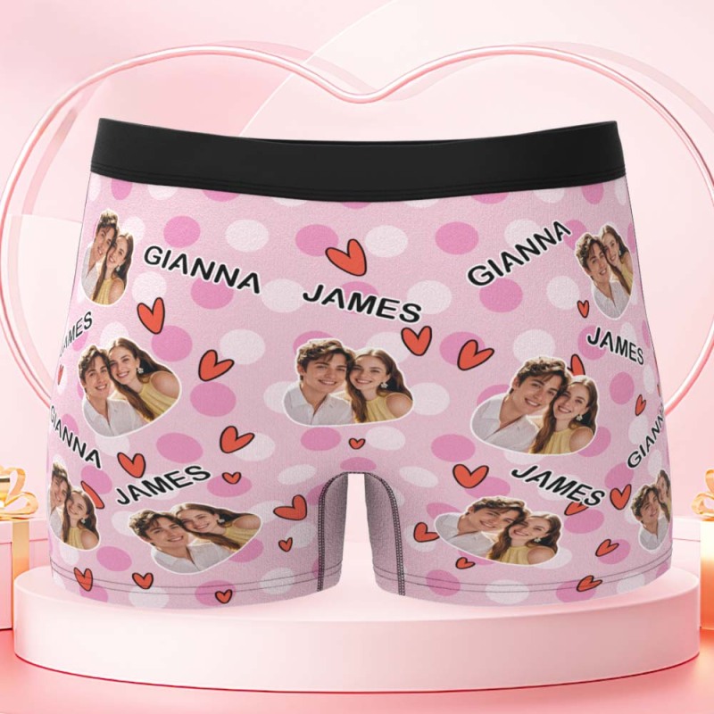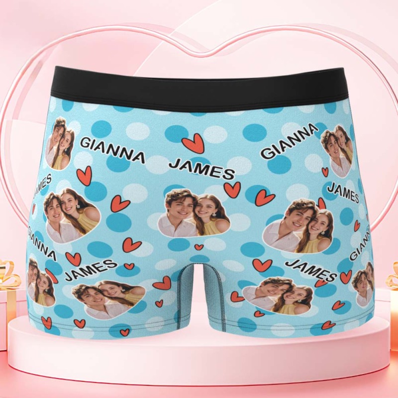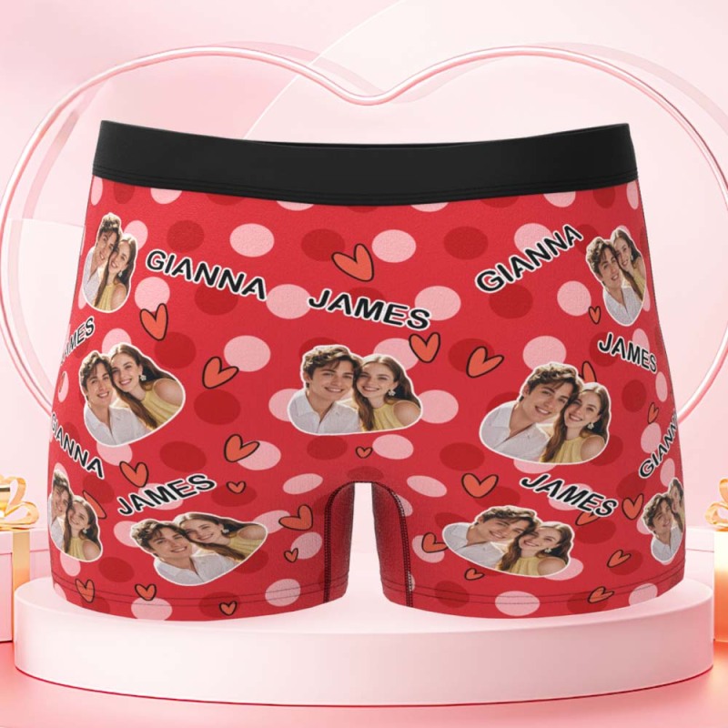 Custom Men's Boxer Shorts Personalized Multicolor Heart Dot Photo Brief Boxer with Name Valentine's Day Gift