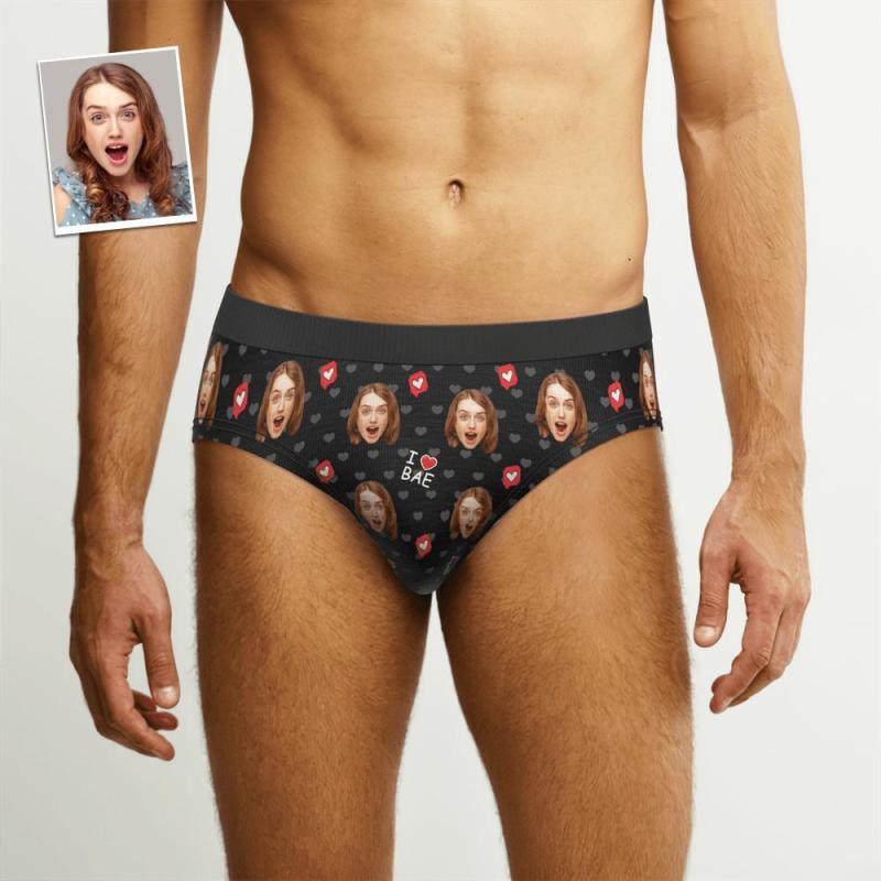 Custom Men's Face Briefs I LOVE BAE Personalized Photo Underwear Gift For Men