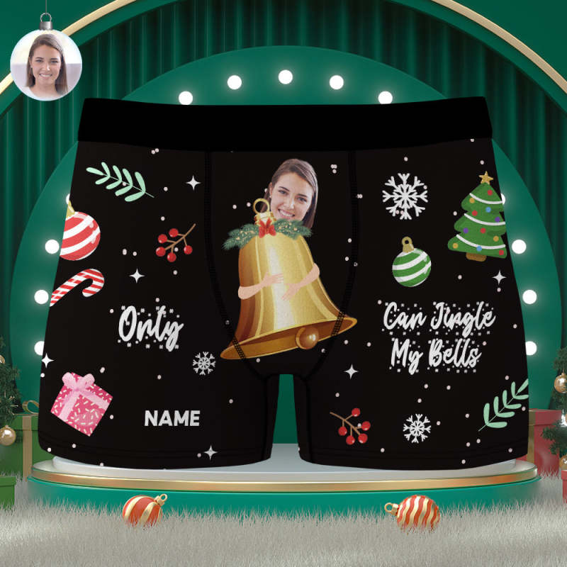 Custom Men's Photo Boxers Personalized Jingle My Bells Christmas Face Underwear