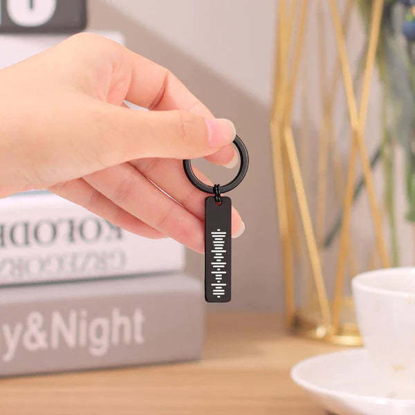 Custom Music Code Keychain Stainless Steel Silver The Best Holiday Gift for Him