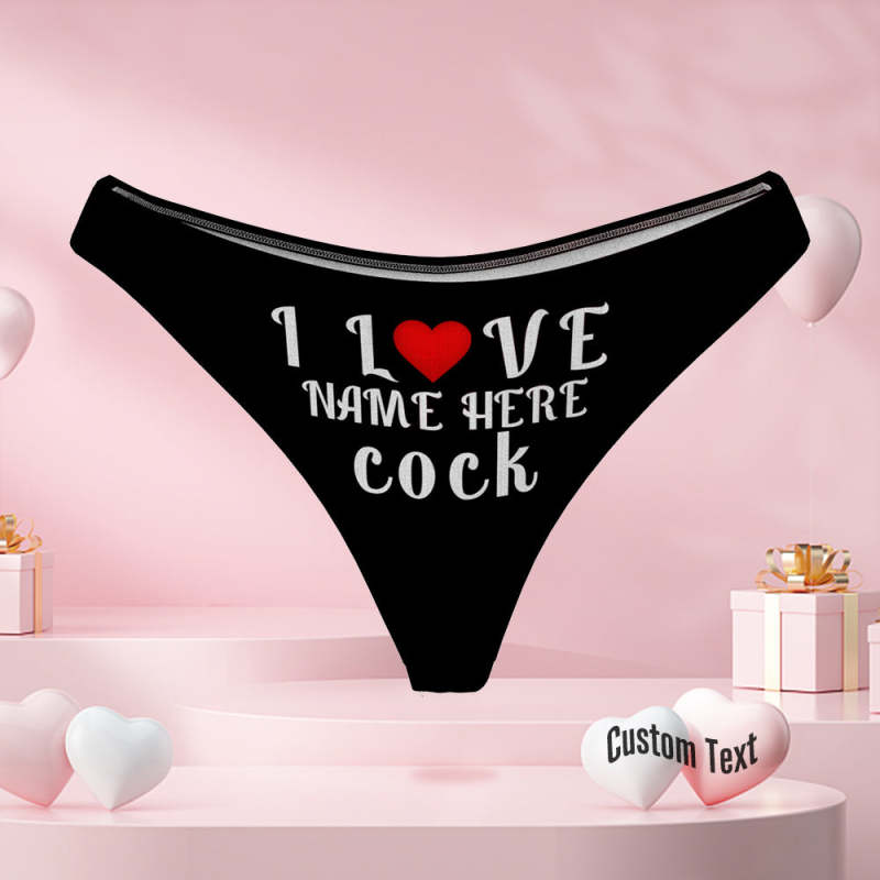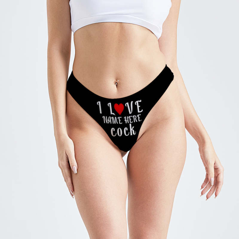 Custom Name I Love Cock Thong Panties Personalized Text Sexy Funny Panty Womens Thong Gift For Her