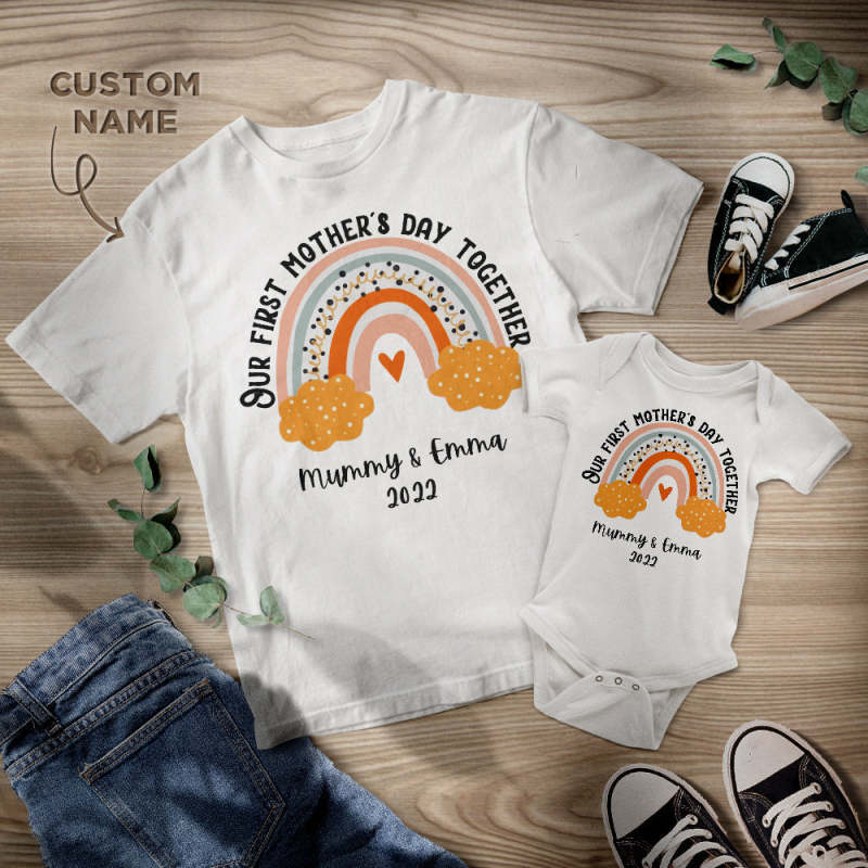 Custom Name Our First Mother's Day Together Shirt Mother's Day Mommy And Baby Matching Outfit