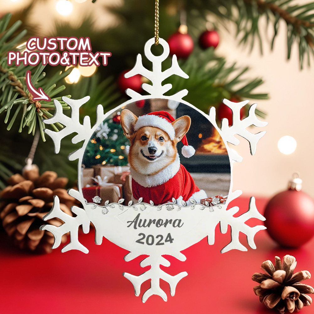 Custom Ornament Personalized Photo and Name Snowflake Stainless Steel Christmas Ornament for Pet Lover