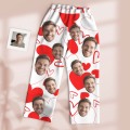 Custom Pajamas Pants White Base Hollow Dotted Line Solid Heart Valentine's Gift for Her