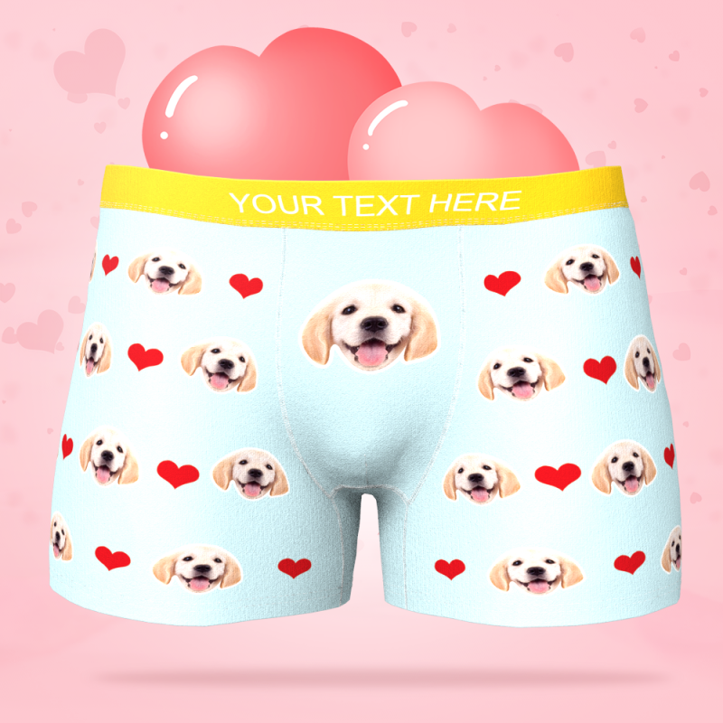 Custom Pet Face Boxer with Text Inscribed Waist