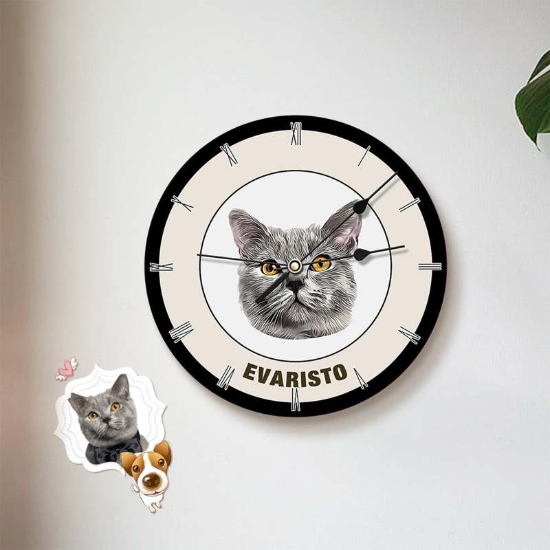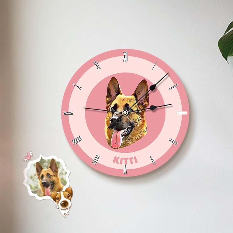 Custom Pet Face Clock Personalized Round Cute Wall Clock Home Decor For Pet Lover - Orange