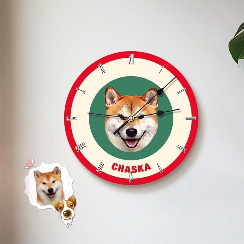 Custom Pet Face Clock Personalized Round Cute Wall Clock Home Decor For Pet Lover - Pink & Blue
