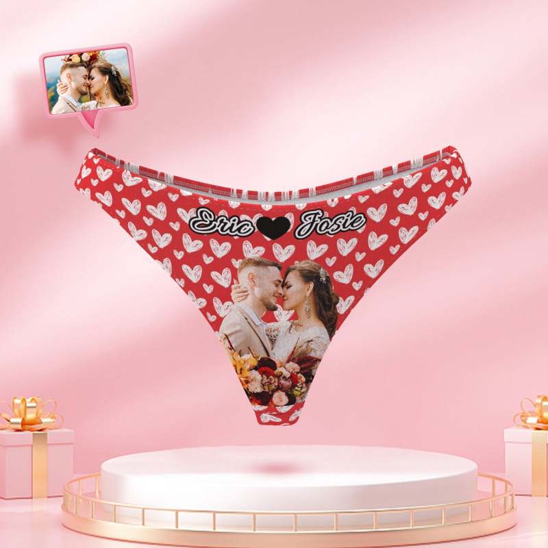 Custom Photo and Name Women Panties Personalized Heart Picture Thongs Underwear Gift For Her