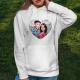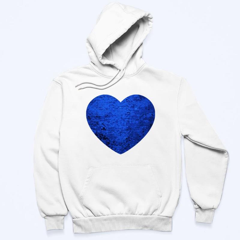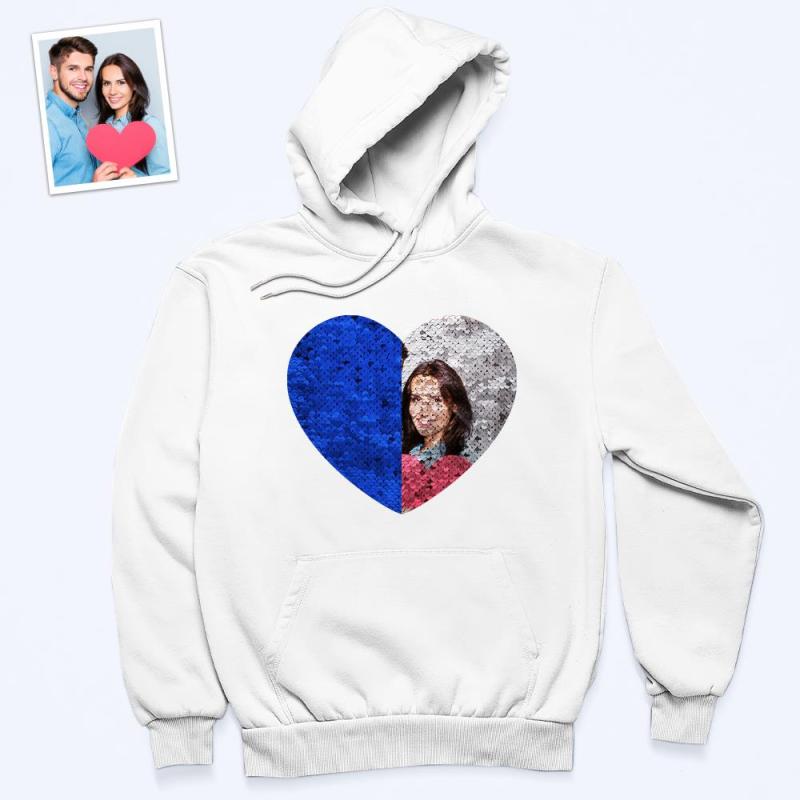Custom Photo Blue Sequin Hoodie Heart Double Print White Hoodie Gift for Men Women