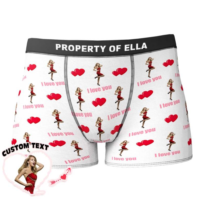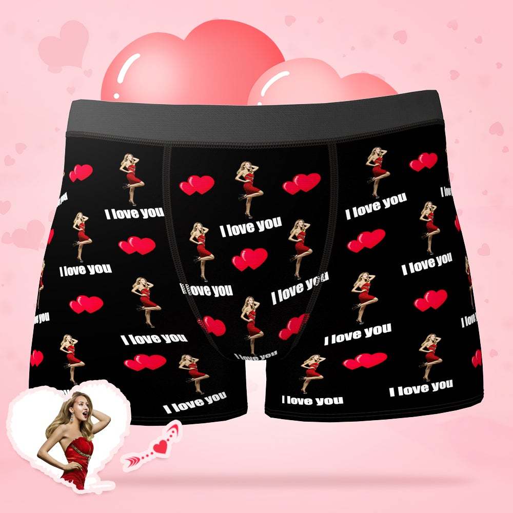 Custom Photo Boxer Double Heart-shaped Face Underwear Valentine's Day Gift - Men