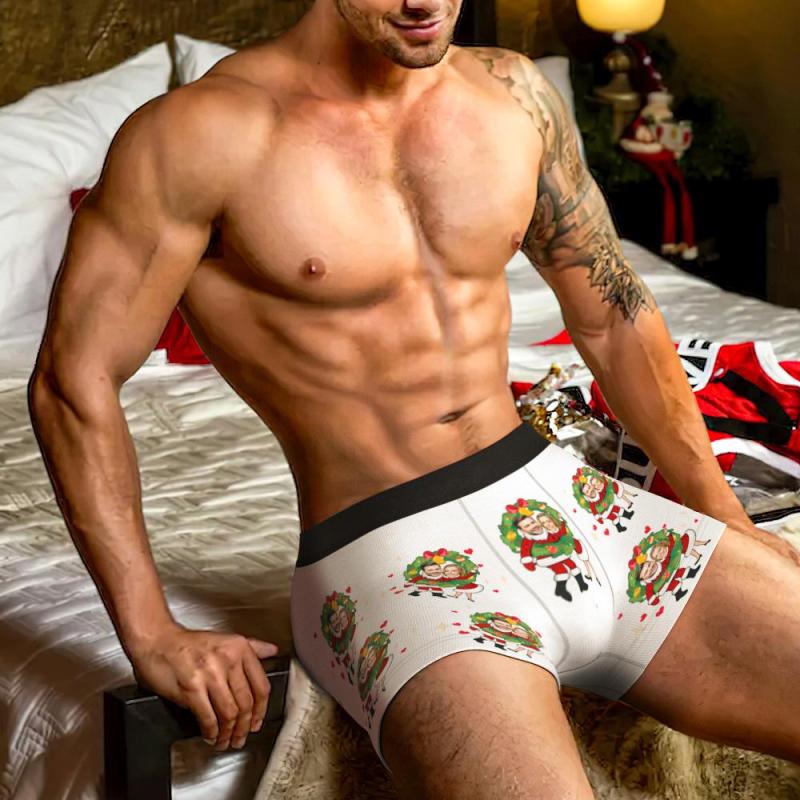 Custom Photo Boxer Face Underwear Double Santa Claus Couple Gifts Christmas Gift AR View