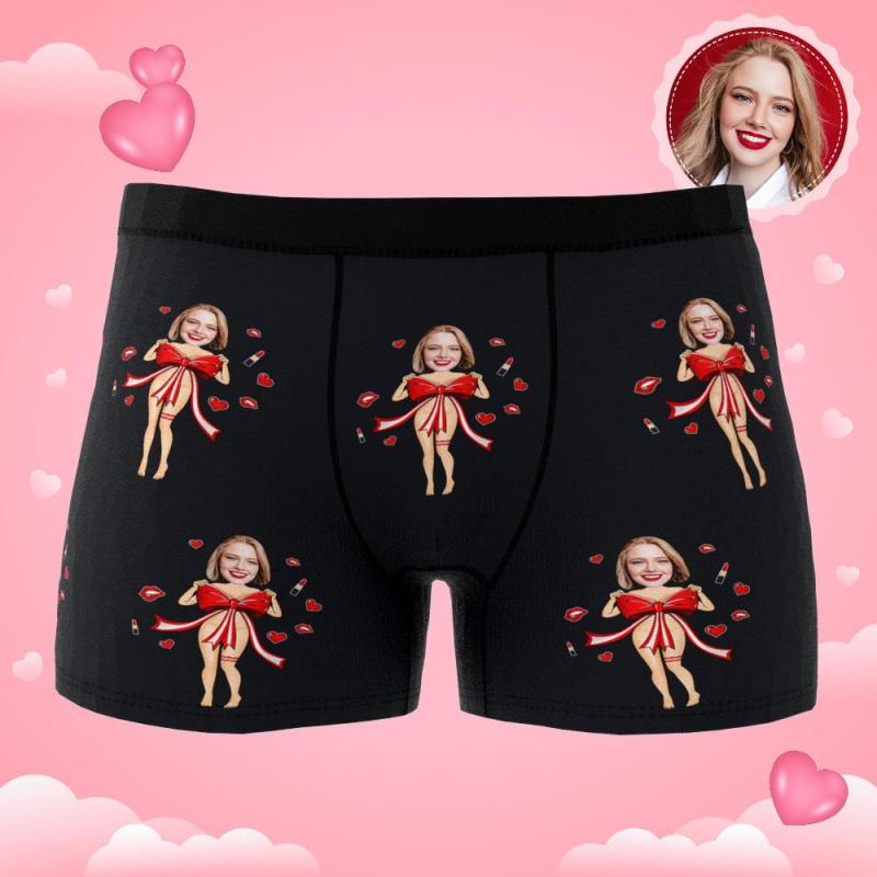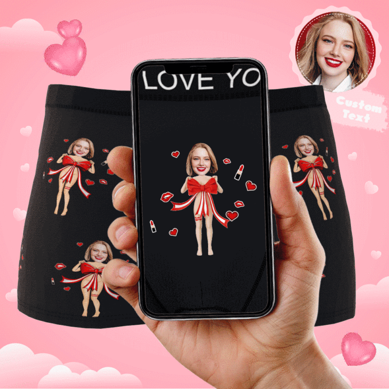 Custom Photo Boxer Red Bow Gift Underwear Men's Underwear Gift For Boyfriend AR View Valentine's Day Gift